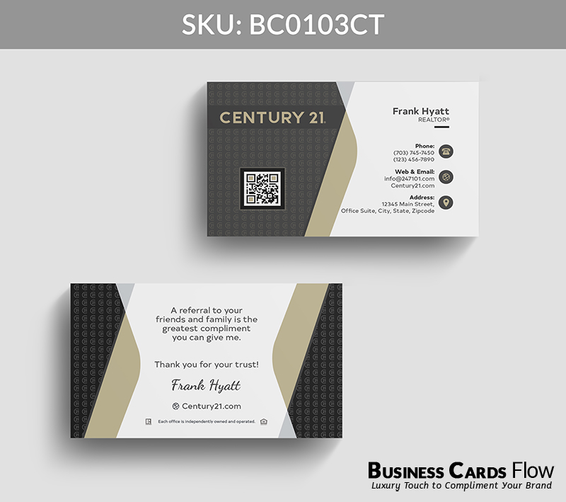 - Gold-Foiled QR Code Frame: Draw elegant attention to your QR code with a subtle gold-foiled border that aligns with Century 21’s iconic brand tones.