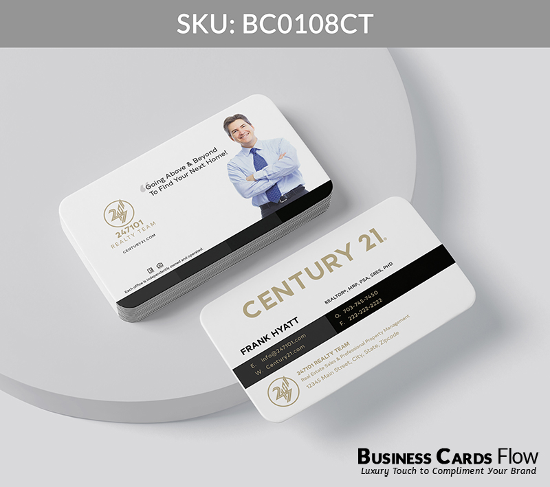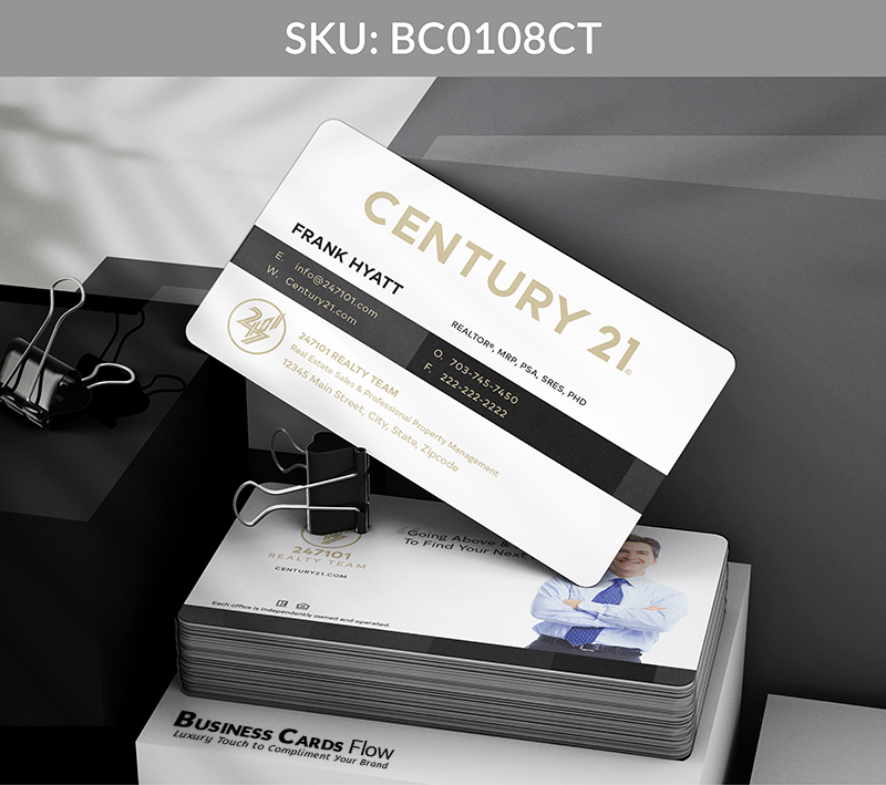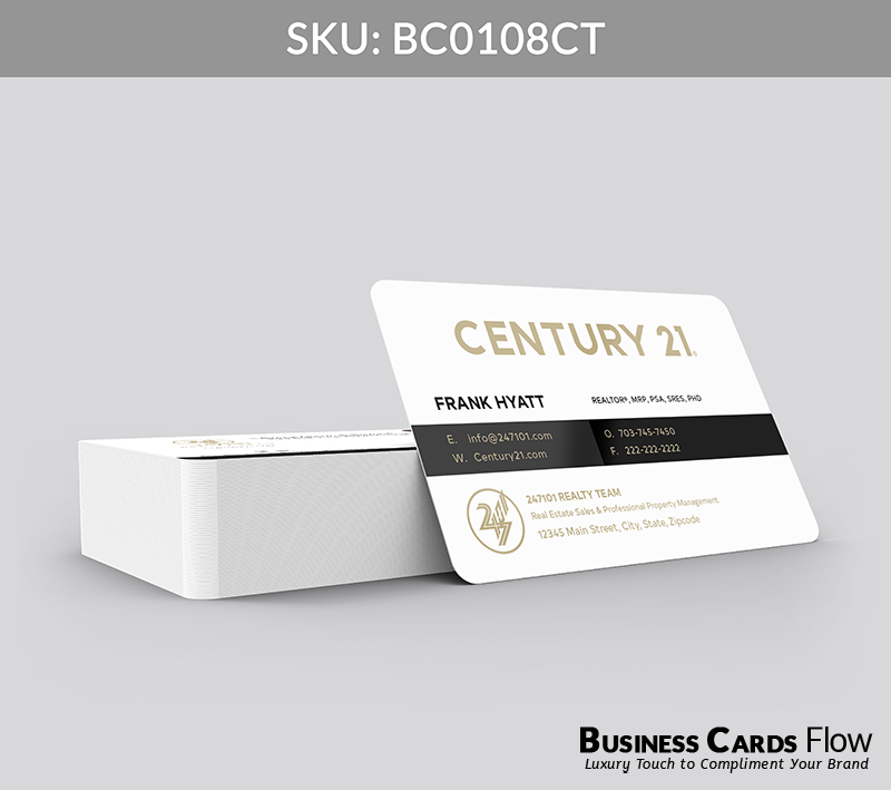 - Gold Foil Accents: Amplify your brand prestige with gold foil treatments that perfectly match Century 21’s signature tones, adding a touch of brilliance to your name or logo.