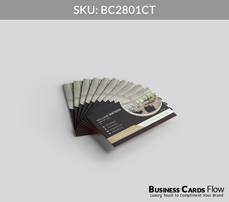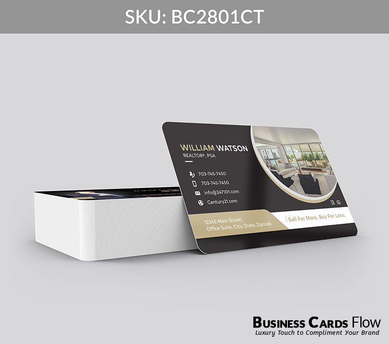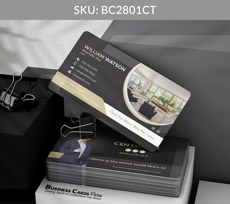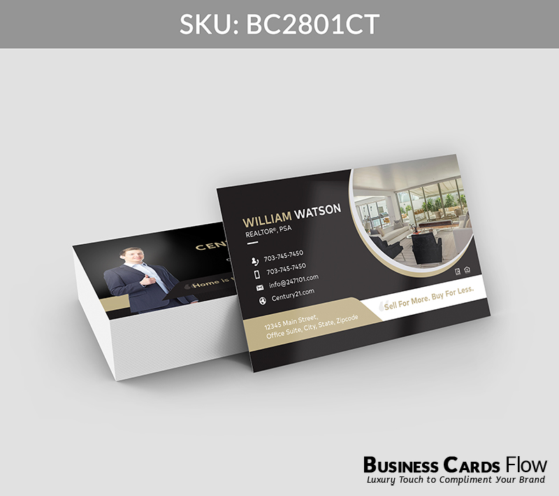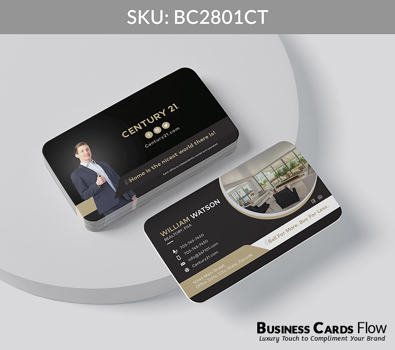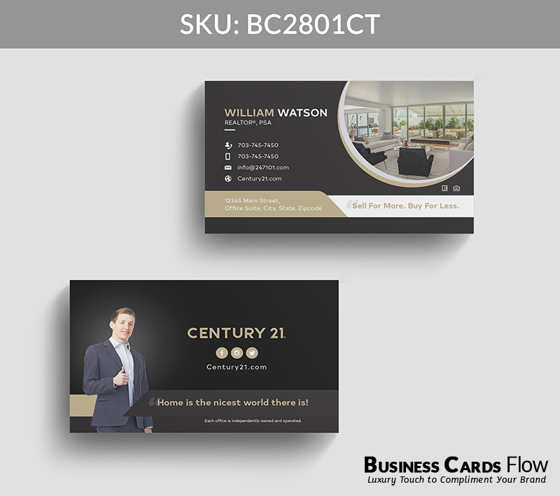 A simple and professional business card layout featuring key contact information cleanly positioned on the left side, paired with a professional photo on the right. The design is completed with a compelling slogan elegantly placed at the bottom, with the option for a sleek silhouette image on the back for added sophistication.