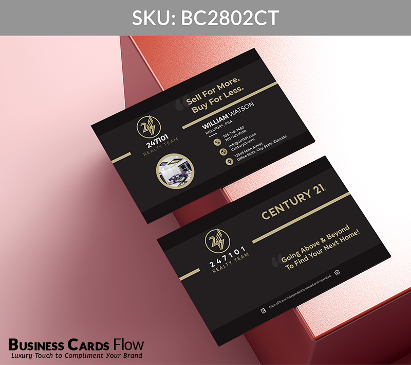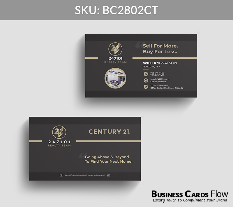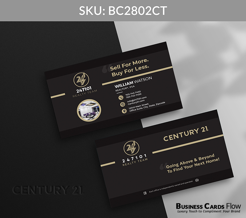 A team-branded business card designed exclusively for Century 21 agents, featuring the team’s logo prominently displayed on the front. Thoughtfully arranged space is reserved for clear presentation of the team’s contact information alongside the distinguished Century 21 brokerage details.