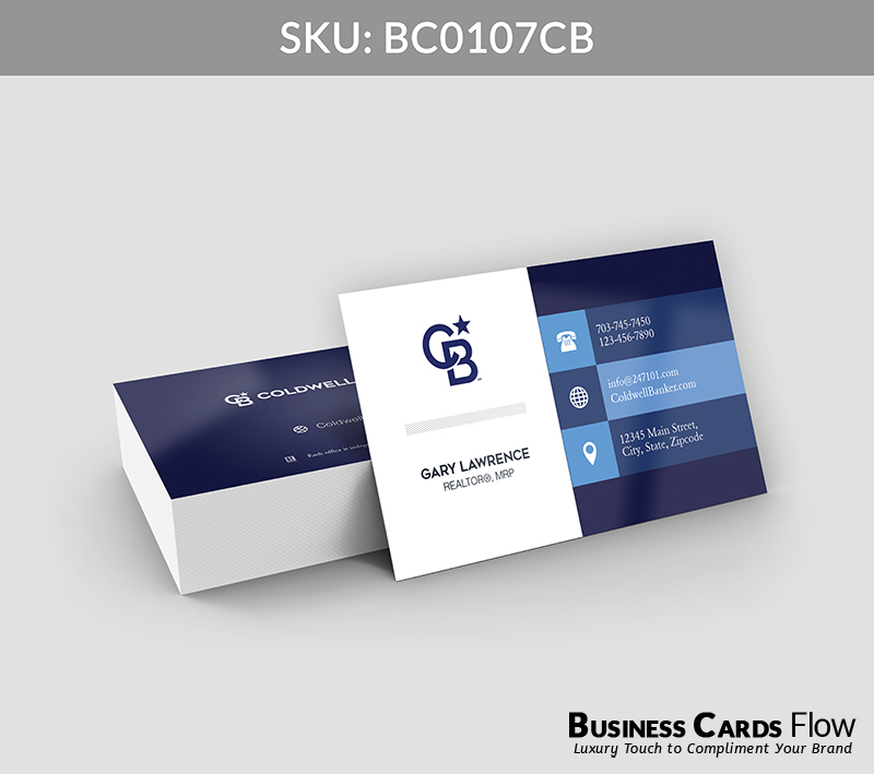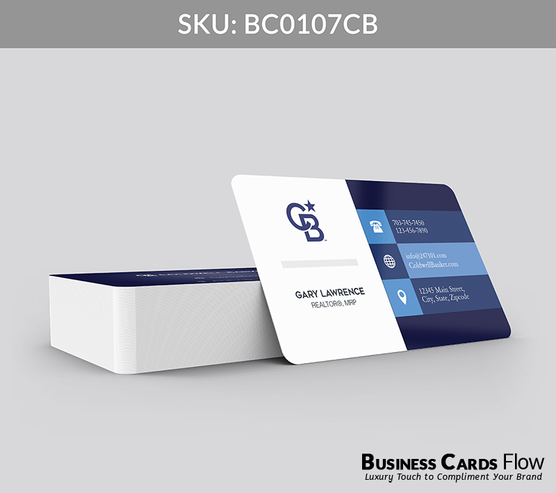 Modern Business Card design for Coldwell Banker agents with contact information on the right-hand side. On the back side of the business cards, you can either keep the Coldwell Banker logo, or have your team’s branded logo!