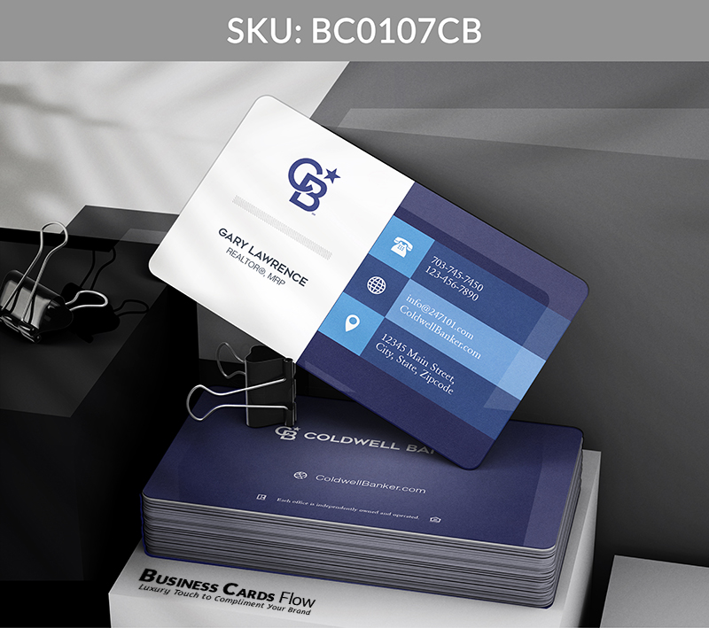 - Coldwell Blue Foil Logo or Team Name – Add luminous blue foil to highlight the Coldwell Banker emblem or your team’s name, creating an eye-catching, brand-consistent detail.