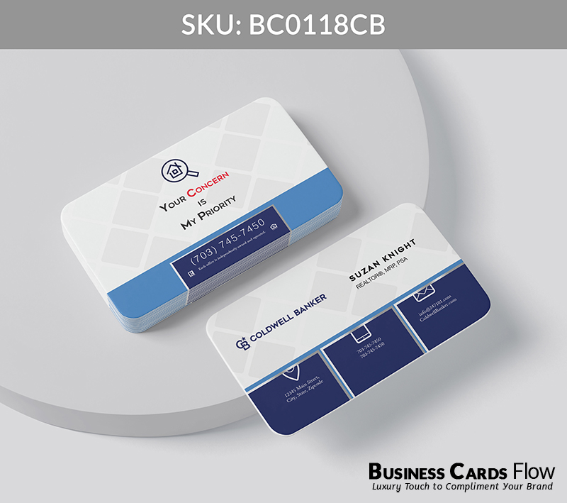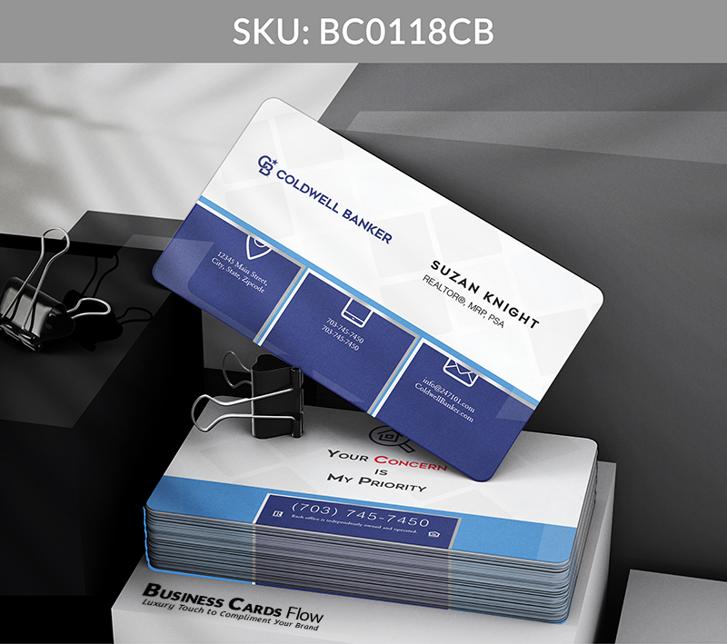 - Metallic Foil Accents: Add silver or branded blue foil to your name or logo for a luxe shimmer that aligns perfectly with Coldwell Banker’s elevated aesthetic.