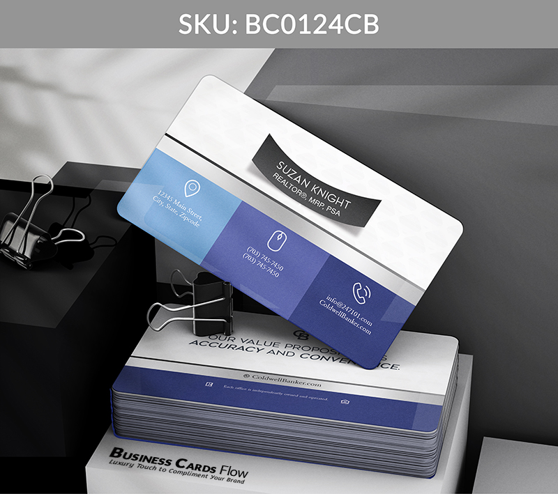 - Colored edge finishes in Coldwell Banker blue or matte gray: Create a premium, cohesive look that’s visually aligned with your brand and effortlessly memorable.