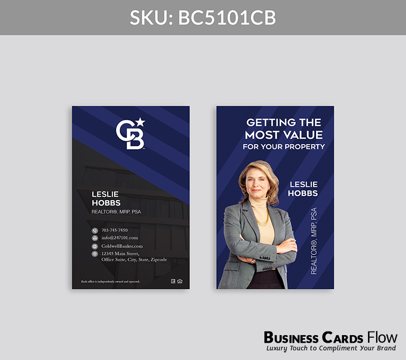 Crafted for agents who command attention with elegance, this vertical layout offers a clean, authoritative look that mirrors the confidence of Coldwell Banker professionals. With strategic use of Coldwell Banker’s iconic blue, black, and gray, each card reinforces your brand’s integrity, consistency, and elevated market position.