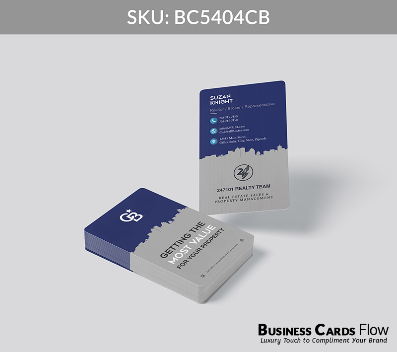 - Metallic foil in silver, gray, or Coldwell Banker blue adds sophistication and draws subtle attention to your name or brokerage mark.