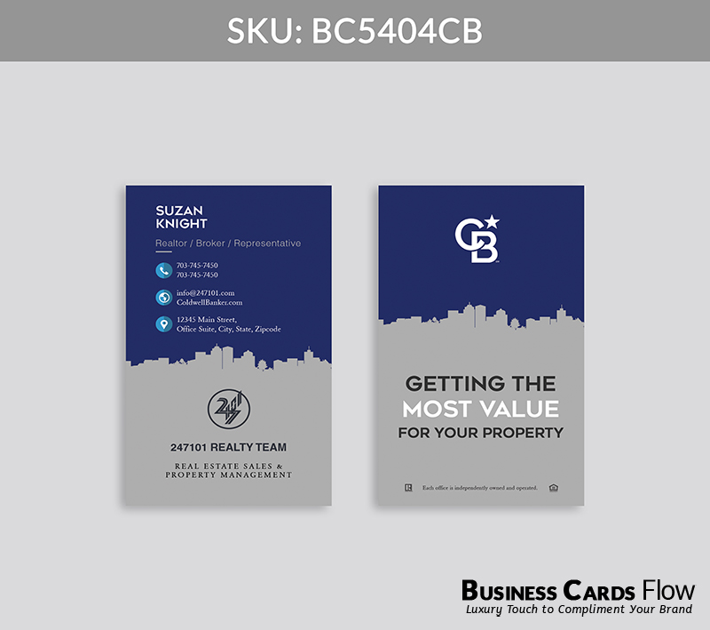 Crafted for the discerning agent, this design pairs clarity with prestige—delivering vital contact details up front while offering space for a memorable slogan that speaks to your unique value. With the option to upgrade to a thicker stock, this card becomes not just a tool, but a tactile reflection of the Coldwell Banker standard—elevated by accents in blue, black, and gray.