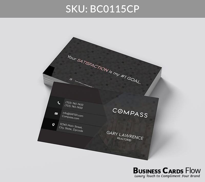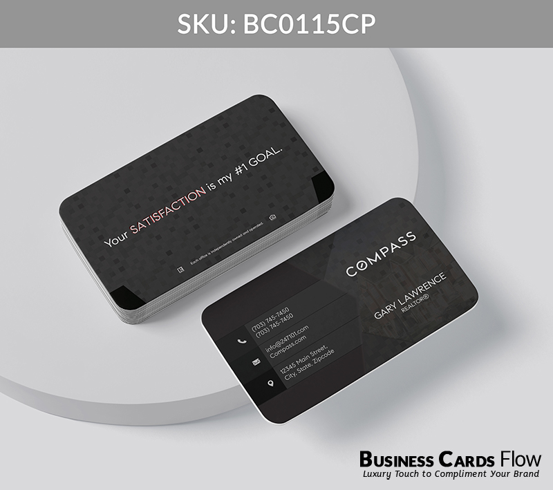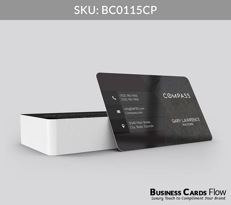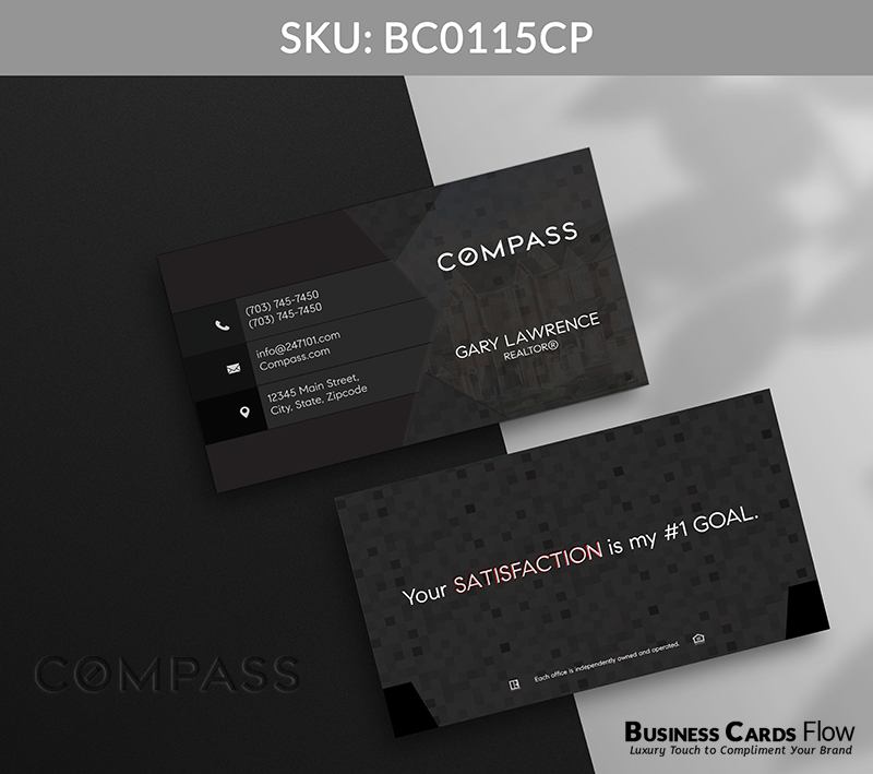 - Metallic Foil: Elevate your card with metallic foil accents in black or silver, harmonizing with Compass’ signature colors and adding an extra layer of prestige.