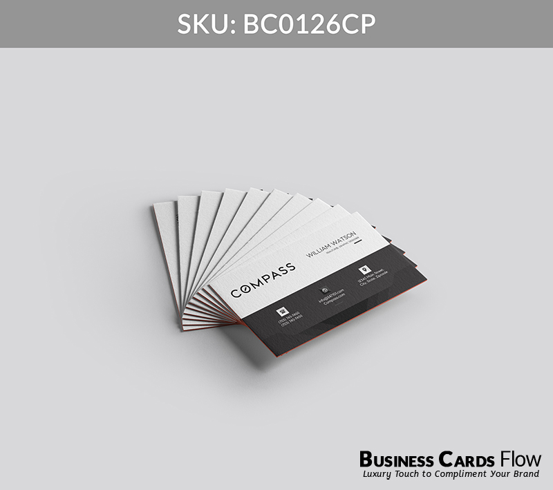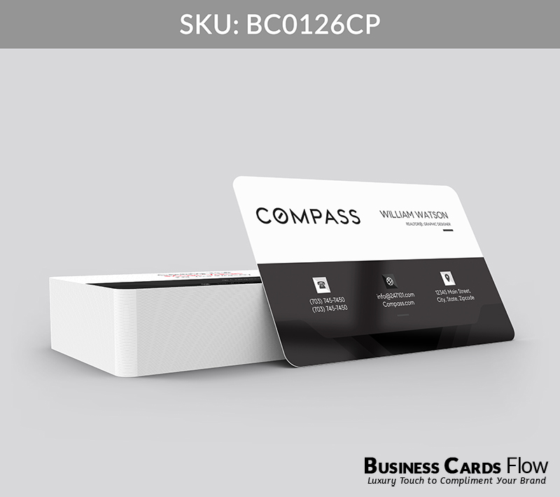 - Custom gray or black edge painting that ties seamlessly into Compass’s brand palette, delivering a sleek finish that commands attention the moment your card is in hand.