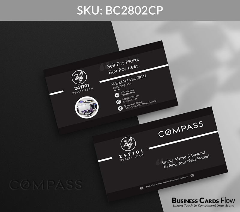 Hand them out at networking events to reinforce your team’s unified brand identity. Present them during listing consultations to reflect both your personal professionalism and the strength of your Compass affiliation. With consistent black, white, and gray tones, every card becomes a touchpoint of trust and credibility.
