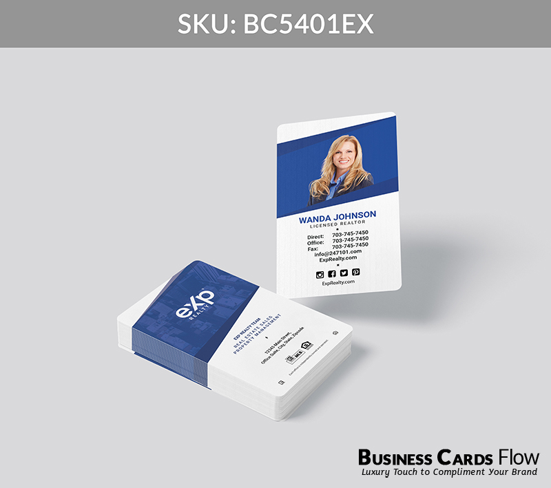- Sleek blue foil for your name or headline adds dimension and impact, drawing the eye while elevating your visual brand with eXp’s signature color.