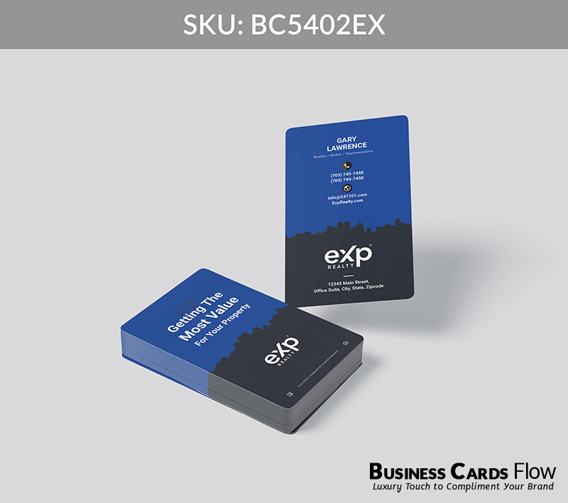 - Blue edge painting or metallic foil accents turn the card into a visual standout while aligning with eXp Realty’s iconic color scheme.