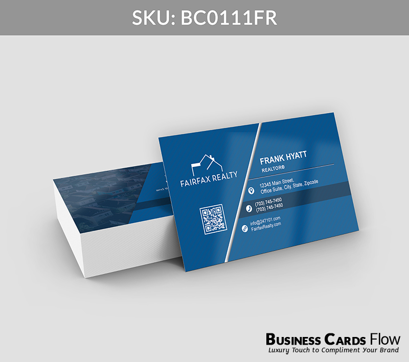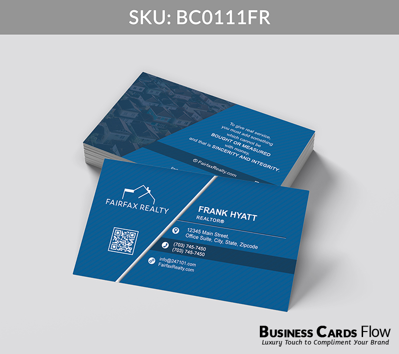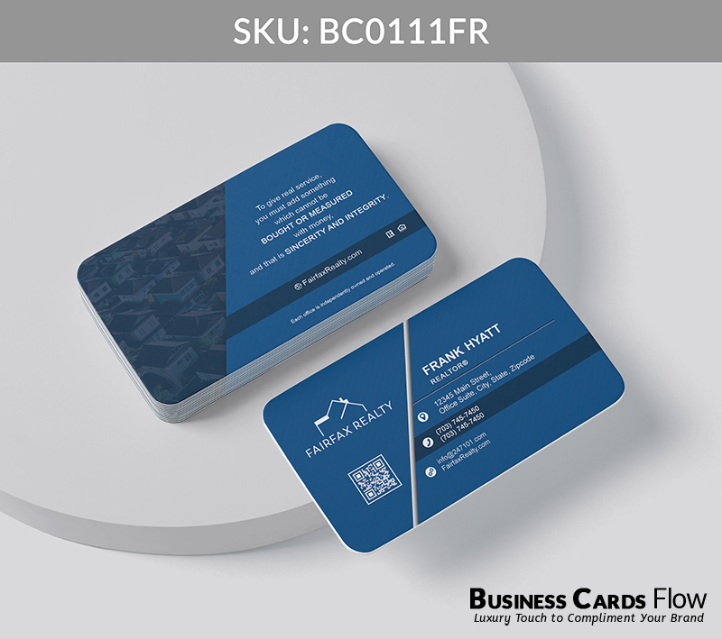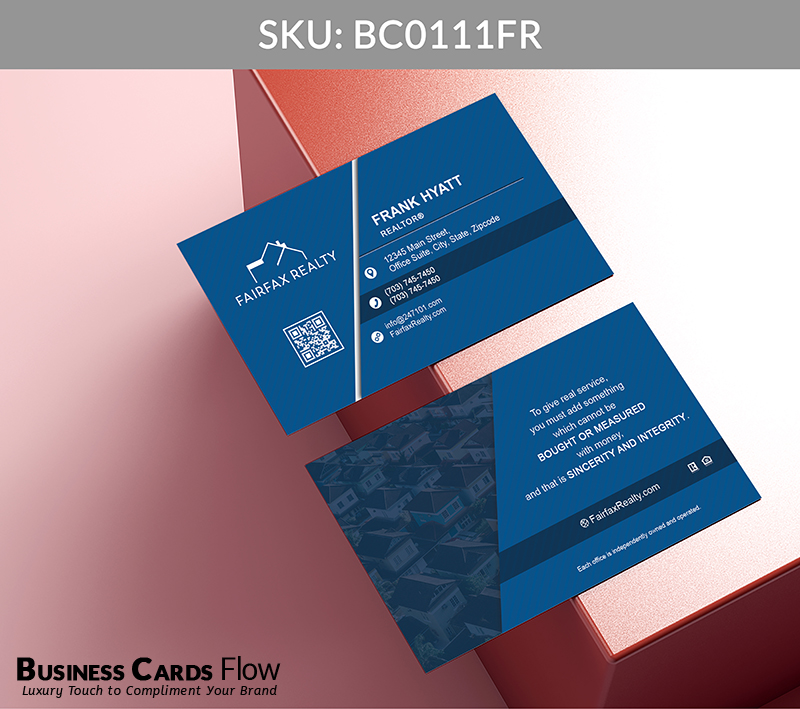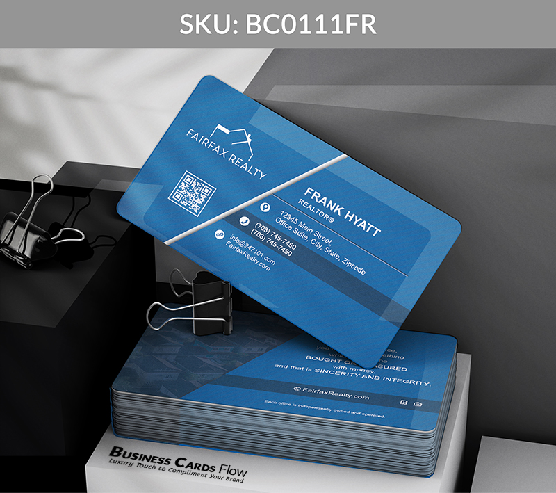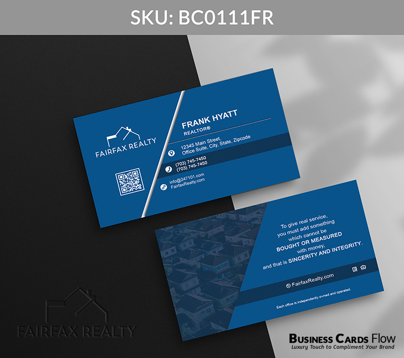 Share your card during showings to make follow-up effortless with the built-in QR code. Feature a powerful mission statement on the back to inspire confidence during listing presentations. Fairfax Realty’s blue and white color integration adds familiarity, consistency, and polish in every client touchpoint.