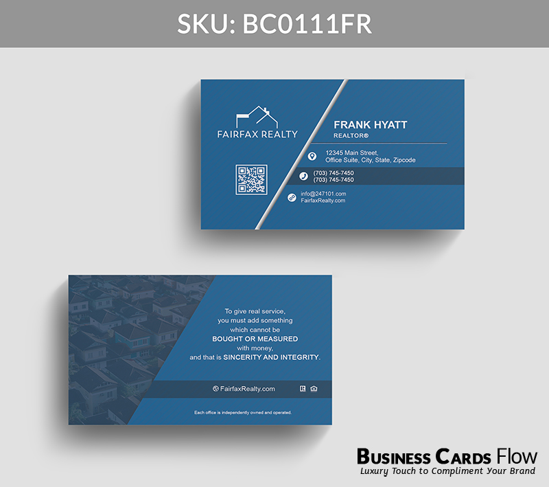Built for the modern Fairfax Realty professional, this card merges sleek functionality with authentic storytelling. The strategic use of Fairfax Realty’s blue and white color palette brings a polished unity to both sides—establishing instant credibility while deepening emotional connection.