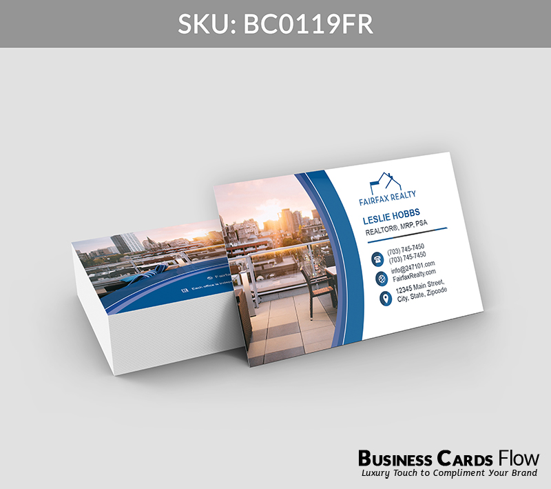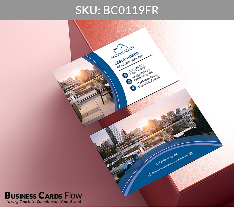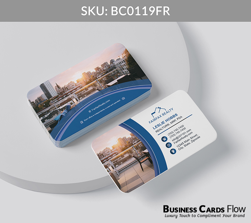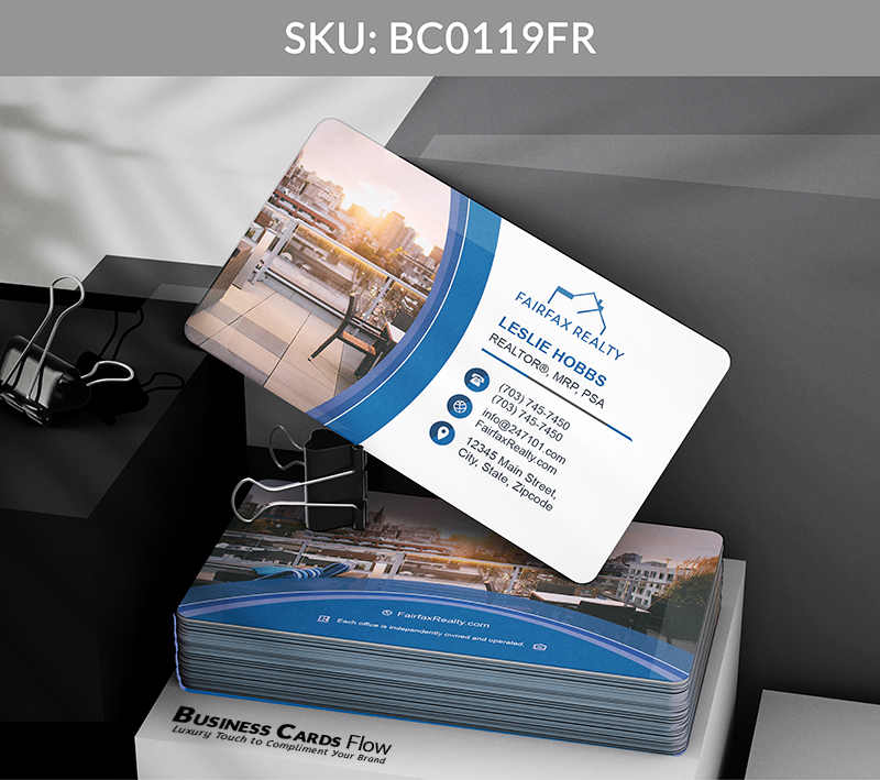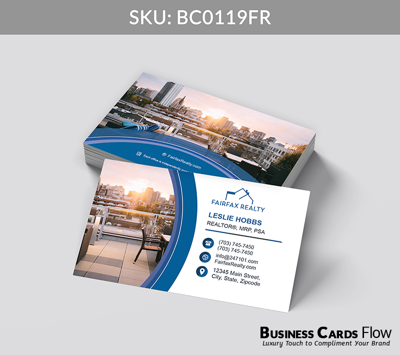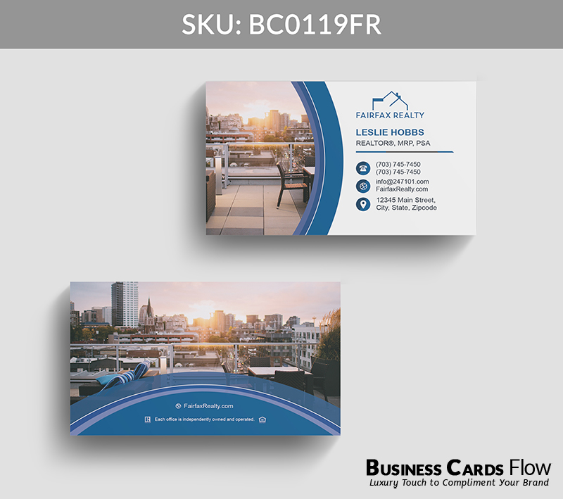 - Blue edge painting or silver foil accents — echo Fairfax Realty’s brand tones while making your card stand out with elegance and authority.