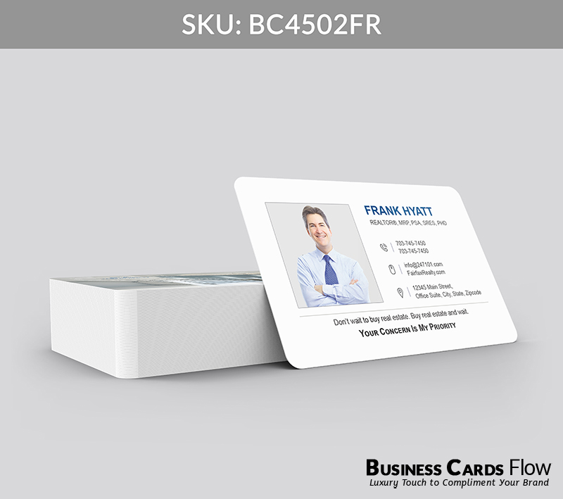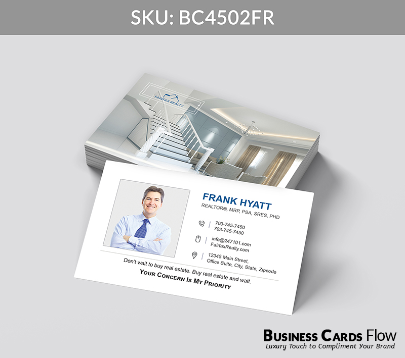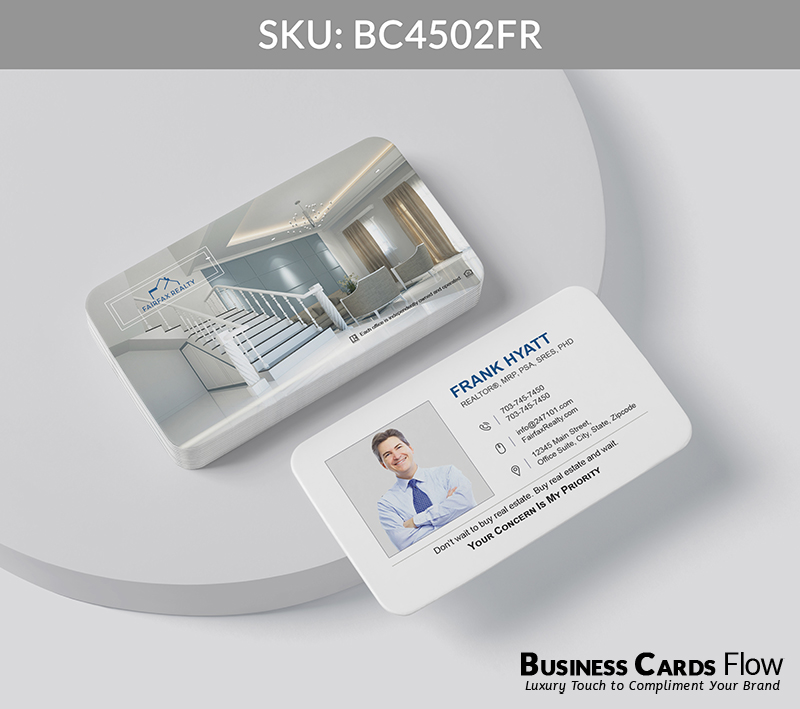 - Color-Edged Detailing: Feature blue-painted card edges for a subtle yet striking nod to Fairfax Realty’s signature branding, ensuring your card stands out even in a stack.