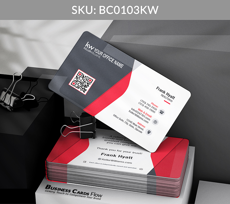 - Red Foil QR Frame – Add a bold red foil outline around your QR code to create visual focus and showcase Keller Williams’ iconic brand identity.