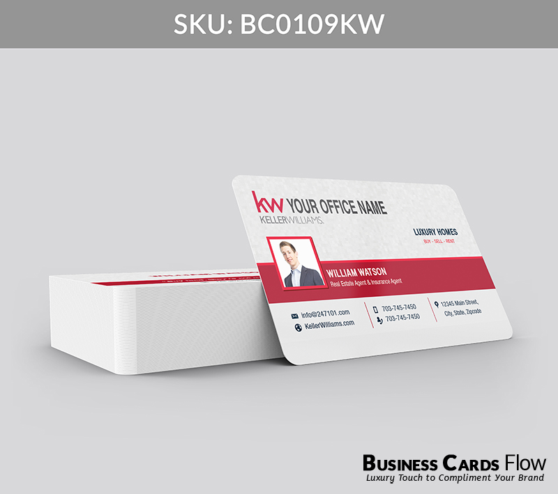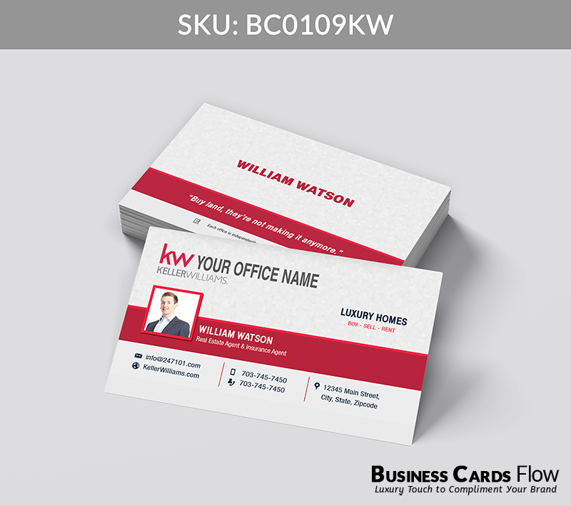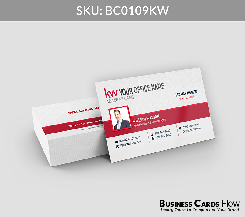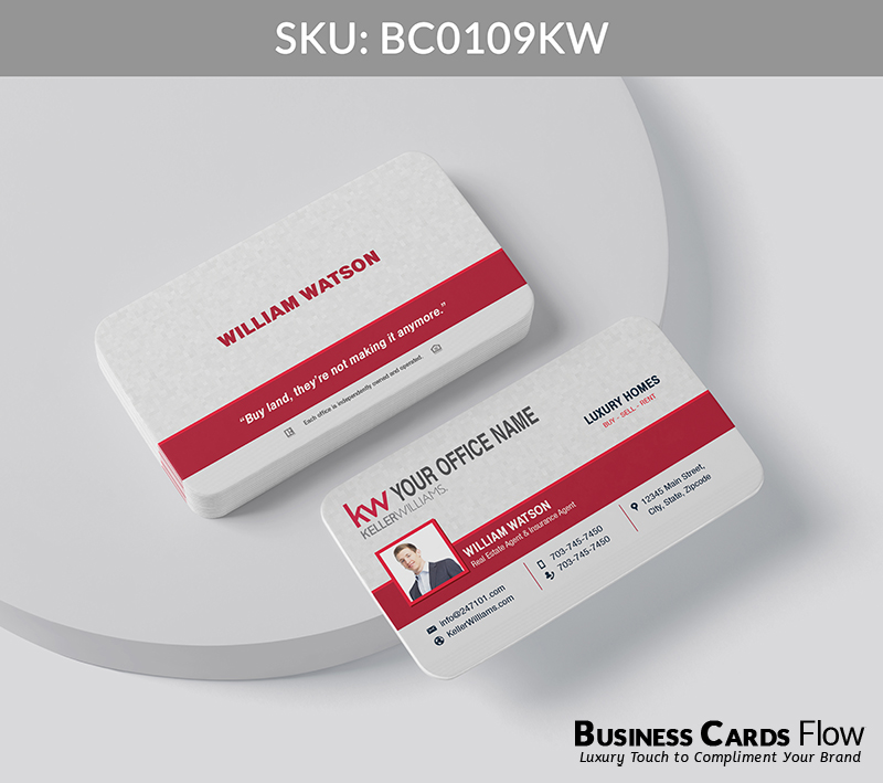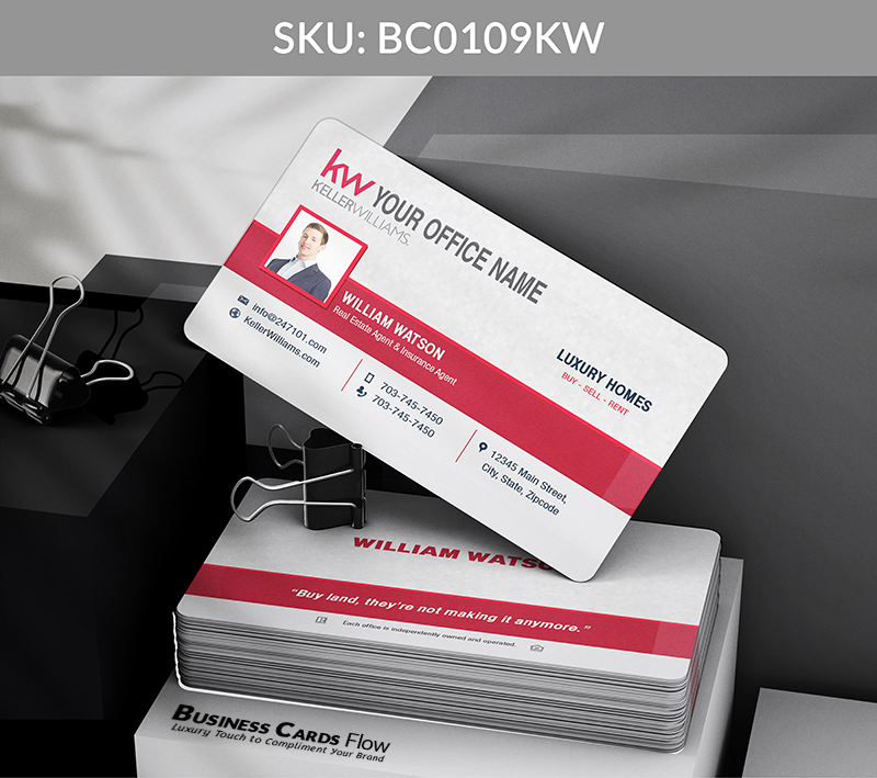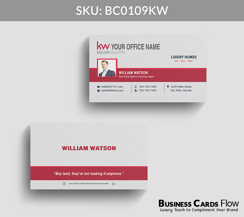 - The use of Keller Williams’ brand colors — red, white, and gray — reinforces your professional identity with every card you hand out.