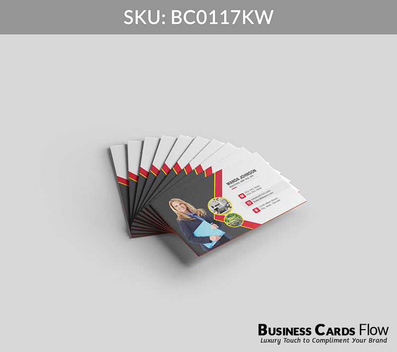 This business card features a refined placement for your profile photo that blends seamlessly with the overall design and any accompanying marketing materials. The silhouette-style effect is crafted to appear natural and integrated — best achieved with a high-quality, professional headshot on a clean background.