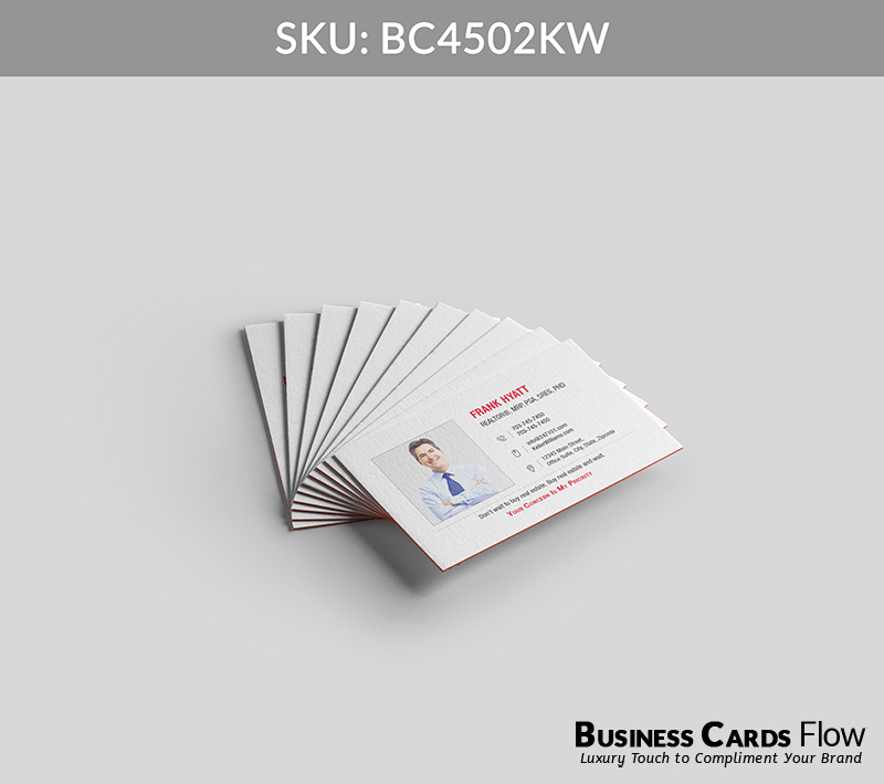 - Edge painting in Keller Williams’ red or gray adds a subtle yet distinctive element to your card, enhancing the luxurious feel and reinforcing brand identity with every exchange.