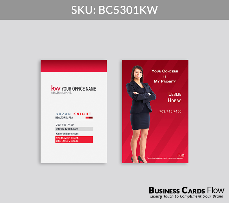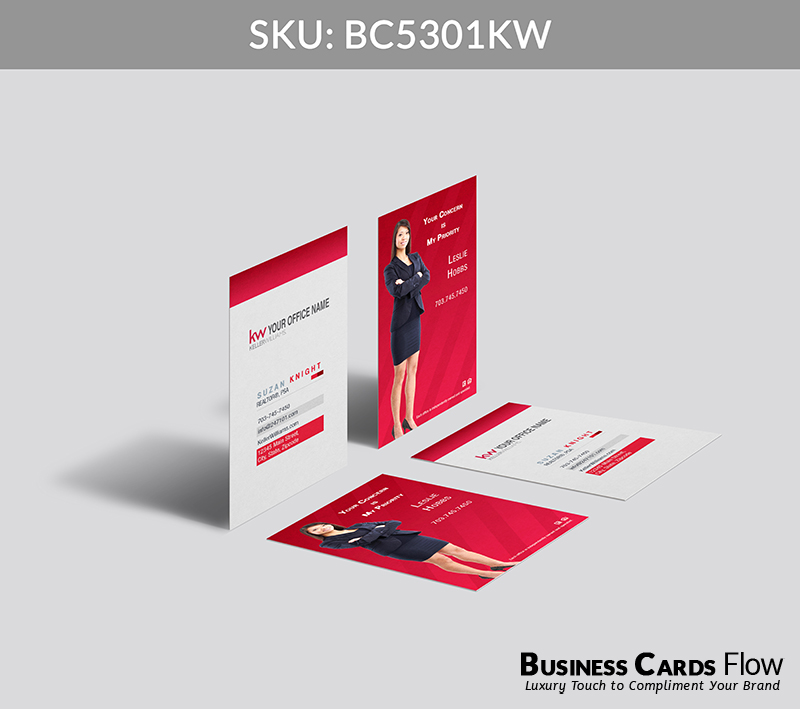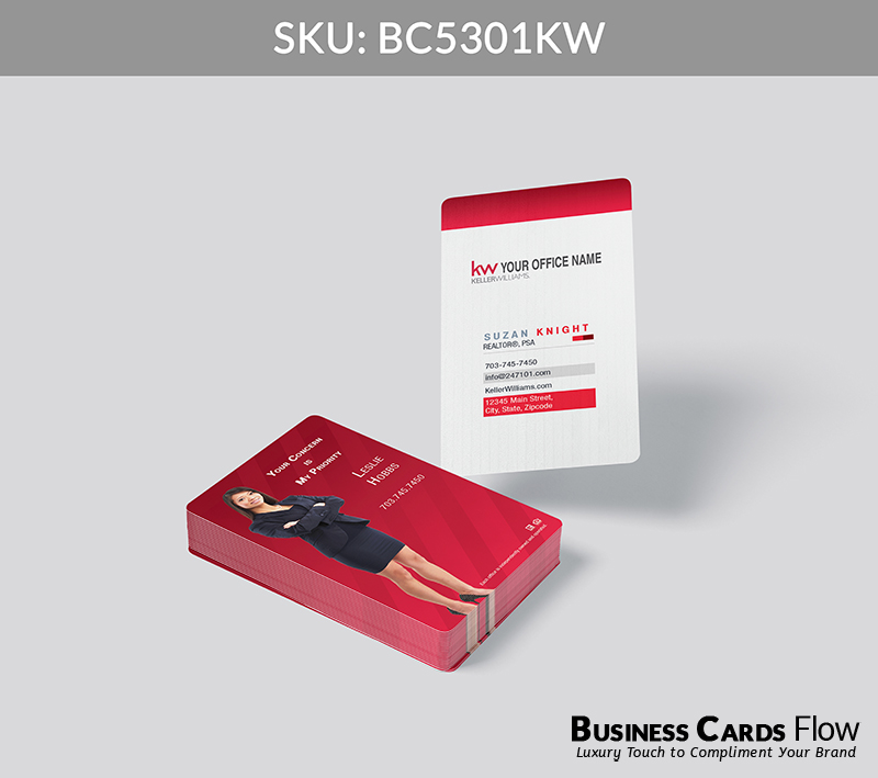 - Red Foil Accent on Slogan: Add shimmer and authority to your brand message with a red foil detail that ties directly into Keller Williams’ signature color.