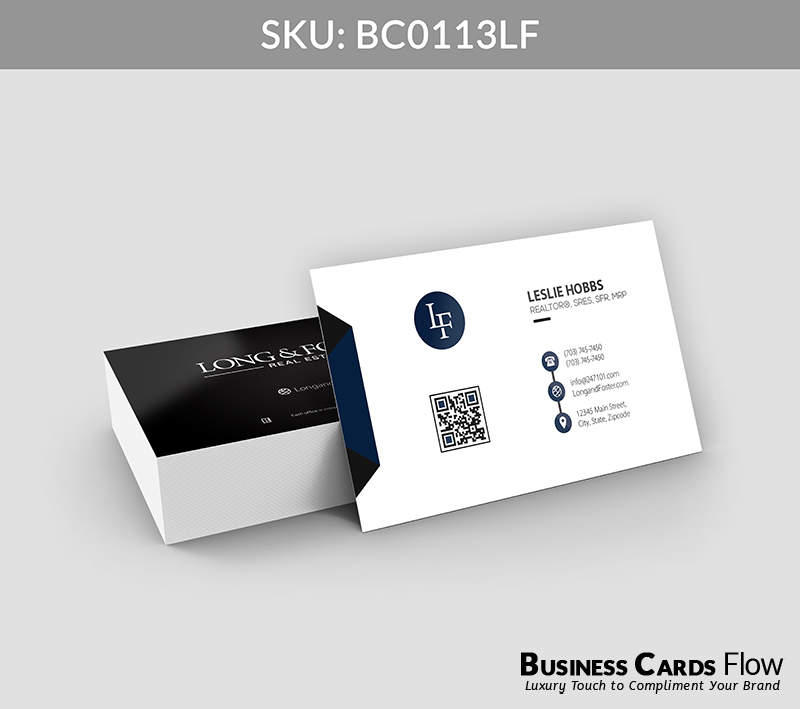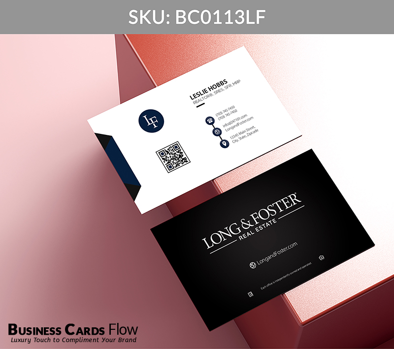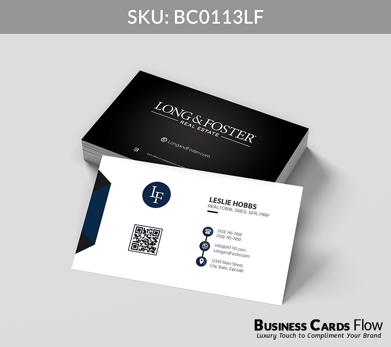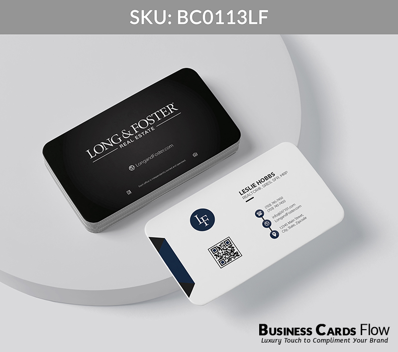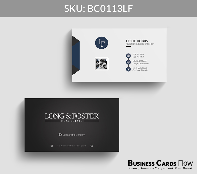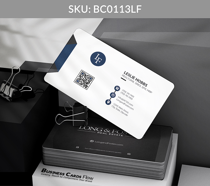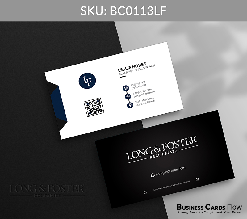 A modern, professional, and clean white business card design tailored for Long & Foster agents. Elegant, high-clarity icons guide the eye directly to your essential contact details — making every interaction seamless and intentional.