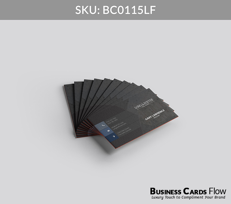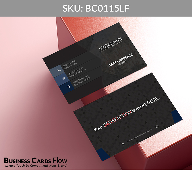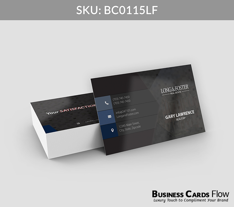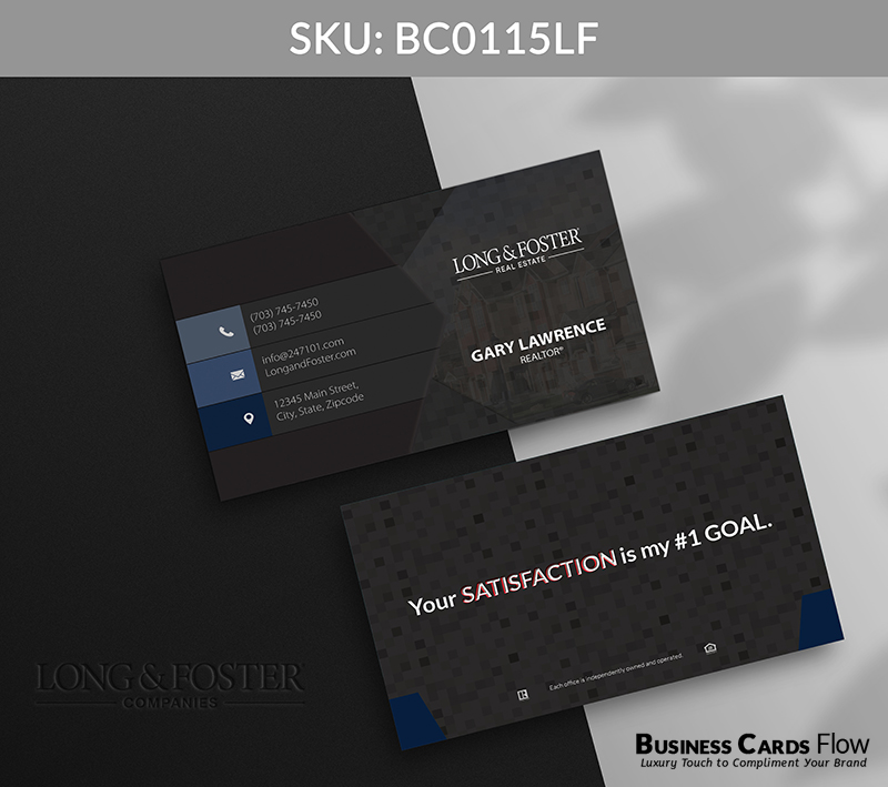 Crafted to mirror the confidence and polish of Long & Foster agents, this design ensures your name — your brand — stands boldly and memorably apart. The textured backdrop on the reverse side, paired with Long & Foster’s distinguished Blue, White, and Black color story, deepens the sense of trust, sophistication, and enduring value.