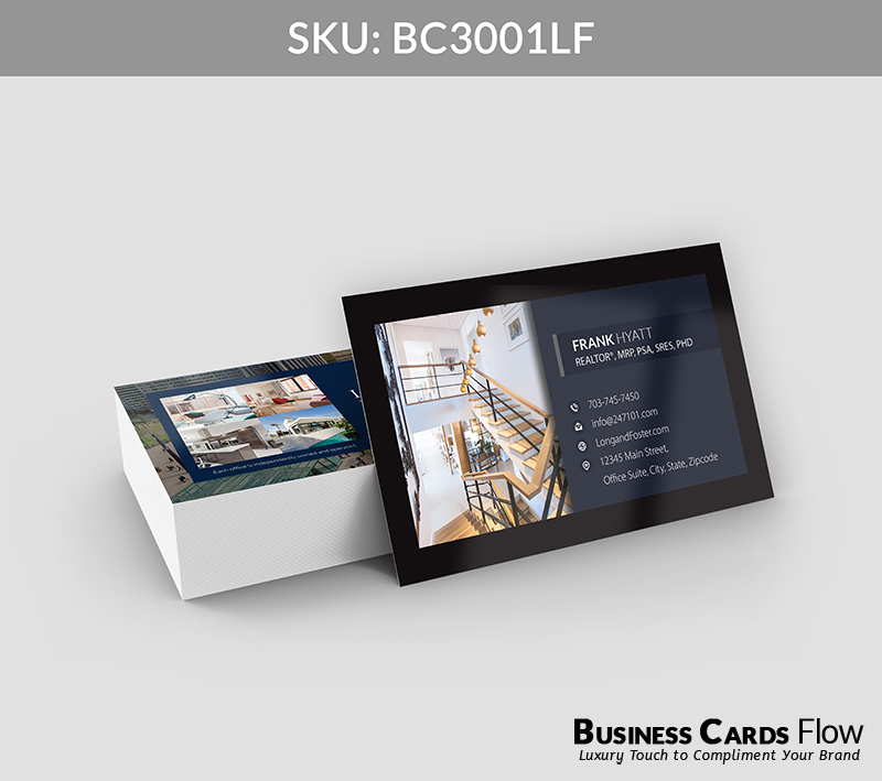 Crafted to make an unforgettable first impression, this card features your profile photo or a standout property image on the left, precisely balanced with essential contact details on the right. The composition is elevated by a bold black backdrop that enhances contrast and visual gravitas, ensuring your presence is both professional and unforgettable.