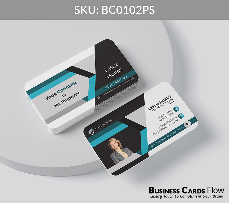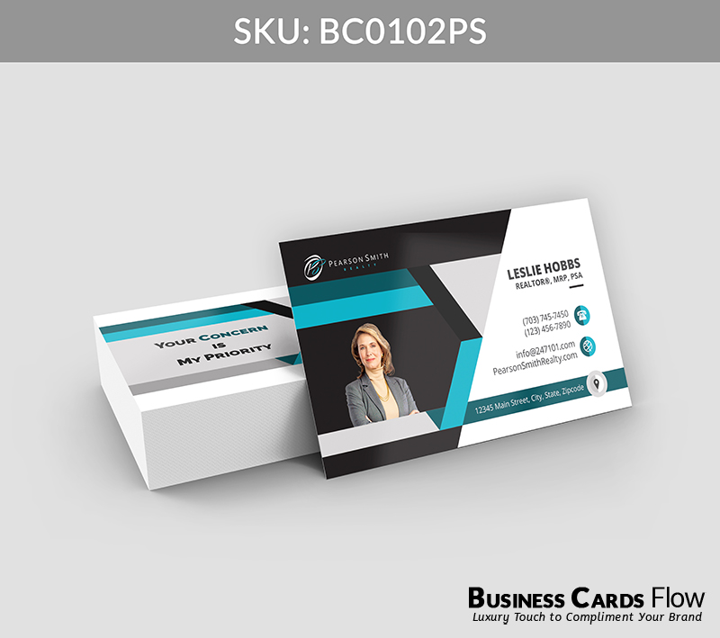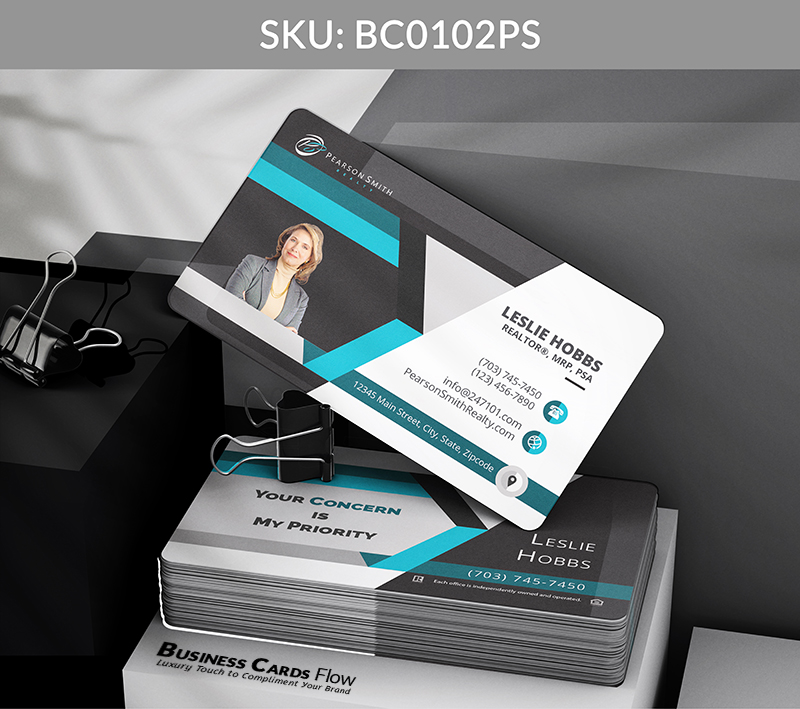 Hand this card to a new lead at a high-end showing — the contrast and layout draw immediate attention, while the custom slogan reinforces your unique value. Use it during listing consultations to remind clients of your distinct, polished approach. With Blue and Grey accents woven subtly into the design, every card reinforces Pearson Smith’s premium branding and your role within it.