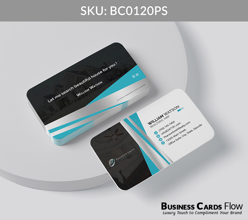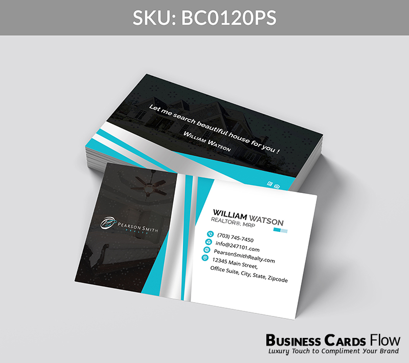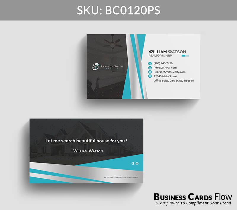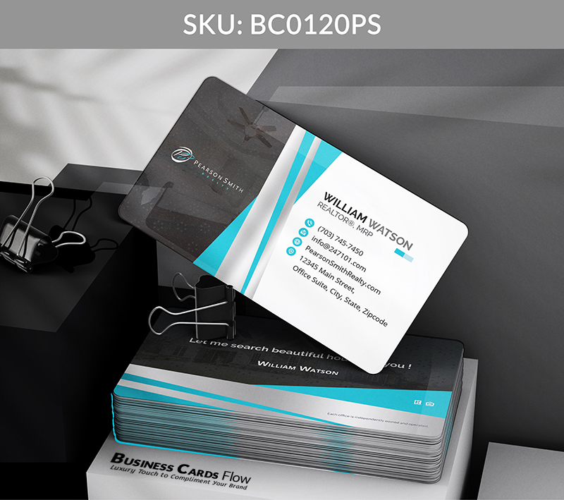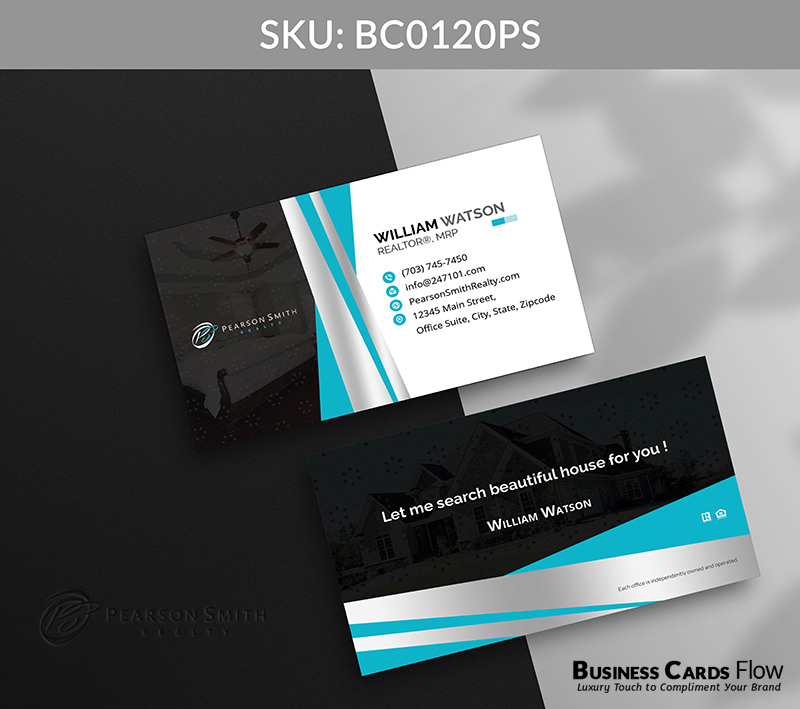 - Pearson Blue Foil Text – Highlight your name or slogan in a shimmering blue foil that pairs perfectly with the brokerage’s brand colors for a truly elevated impression.