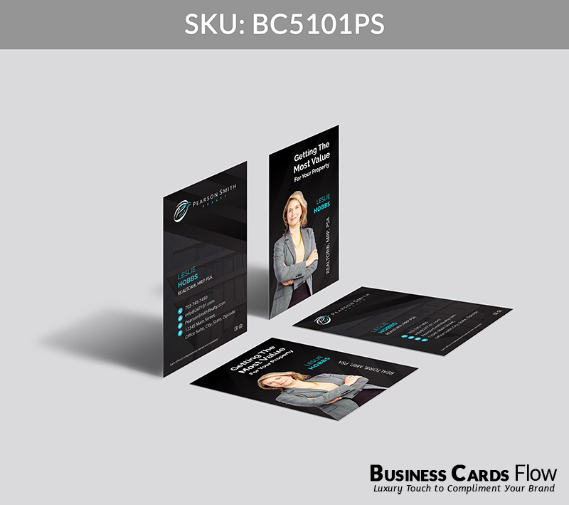 Crafted to mirror the poise and presence of top-performing Pearson Smith agents, this card brings together precision and personality in a format that feels both elevated and intentional. Subtle uses of Blue and Grey throughout reinforce the brokerage’s trusted identity while allowing your personal brand to shine.