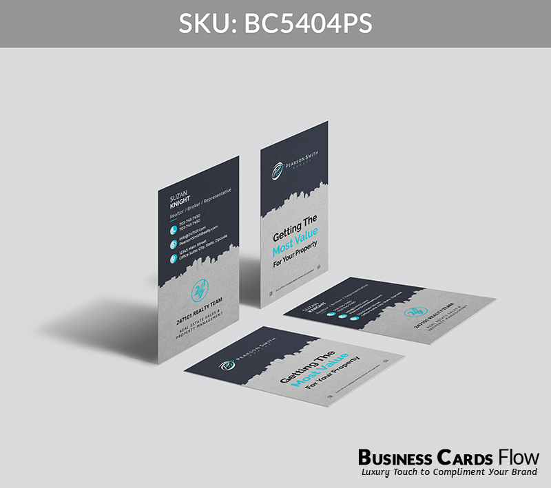 Crafted to reflect the confidence and clarity of Pearson Smith agents, this card design delivers immediate impact with its thoughtfully balanced layout and purposeful presence. Paired with the sophisticated use of Blue and Grey accents, it becomes more than a card—it becomes an extension of your brand’s integrity and refinement.