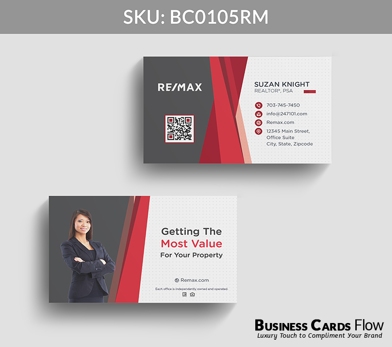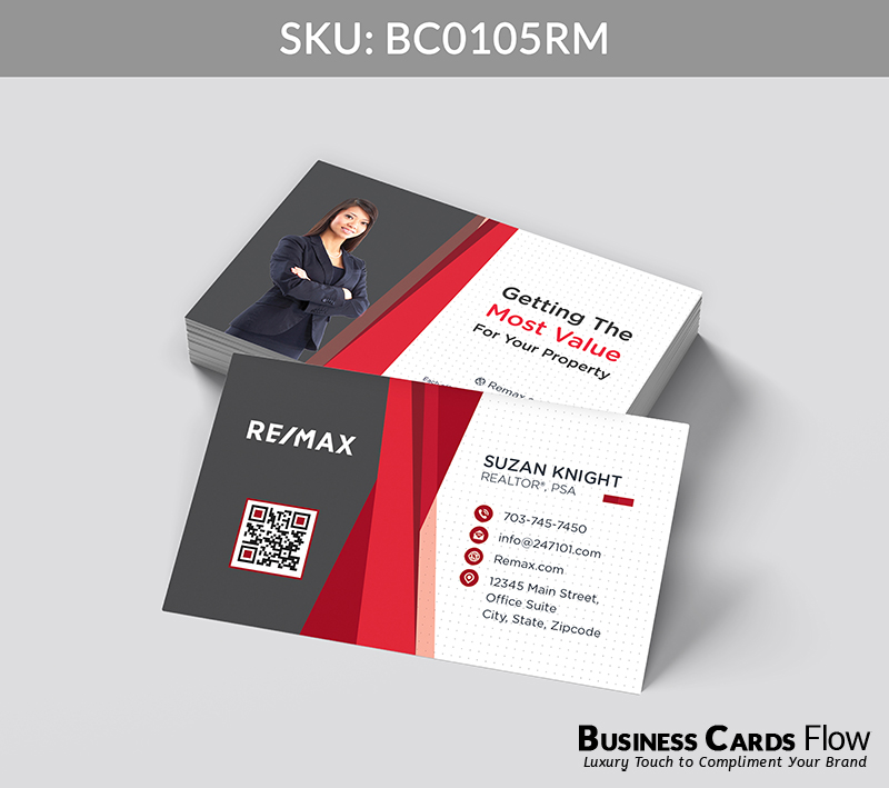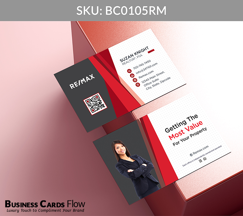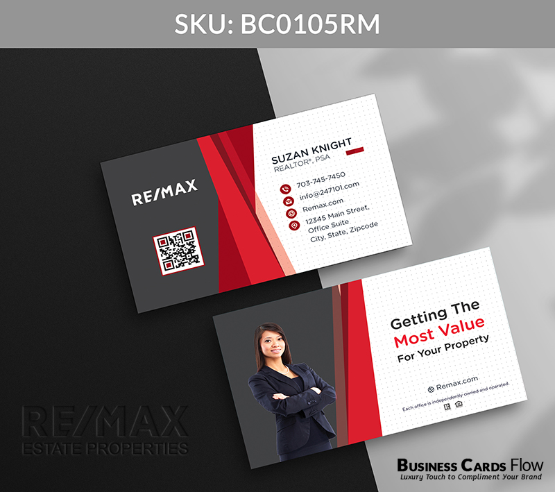 - Metallic foil accents in REMAX Red or Blue draw the eye to your name or logo, reinforcing your identity with bold sophistication.