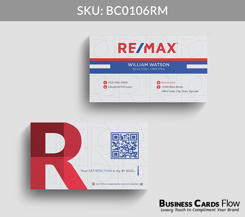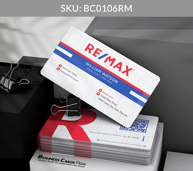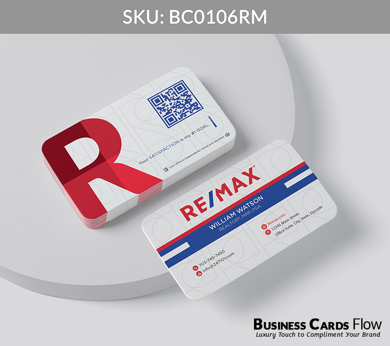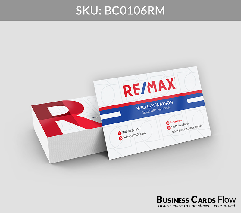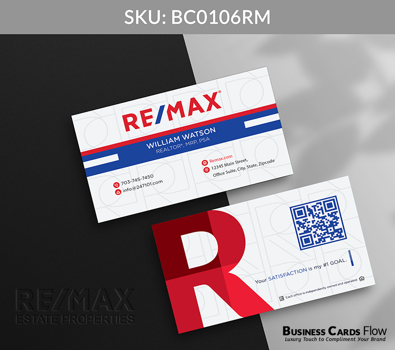 Modern Black Banner Business Card for REMAX Agents! Your phone number and your website are both highlighted for clients to easily see your contact information. Back side of the card has lovely REALTOR logo in modern design.
