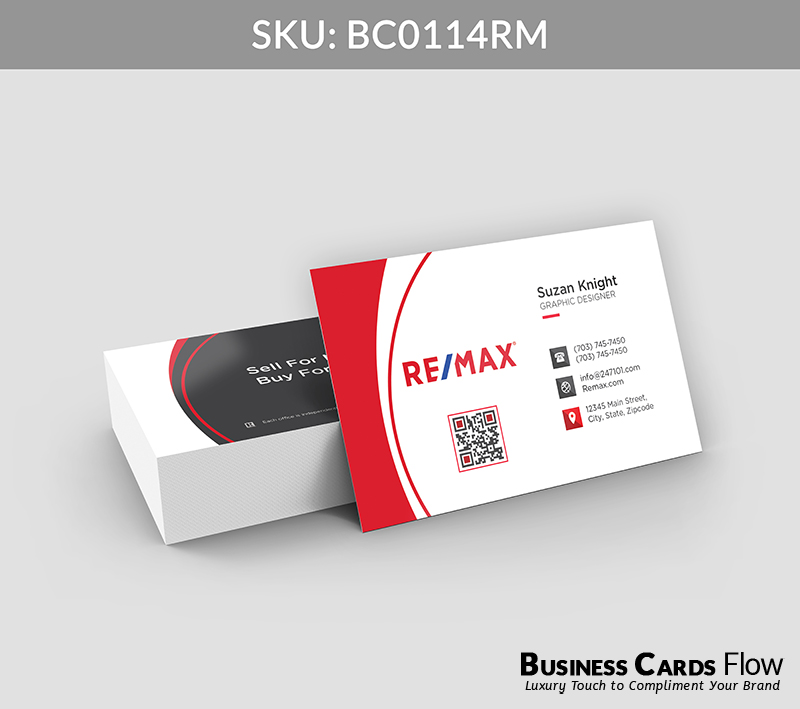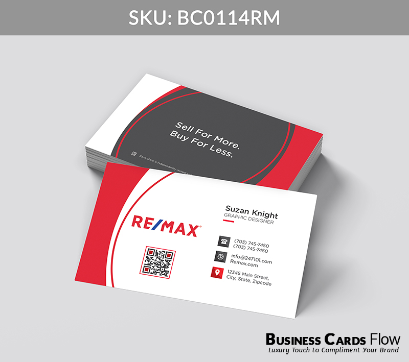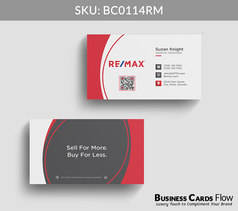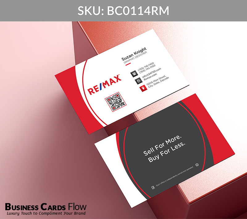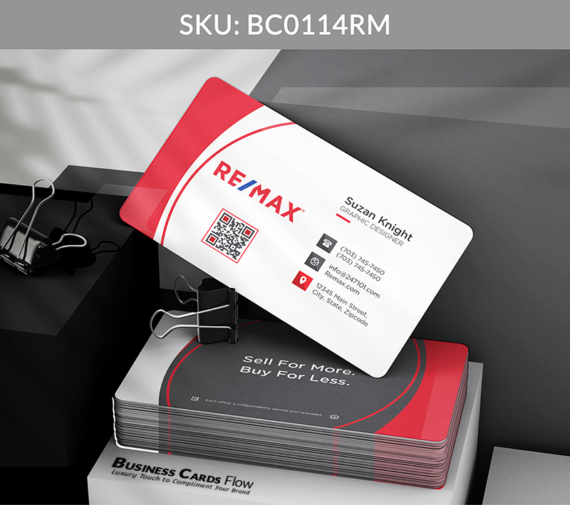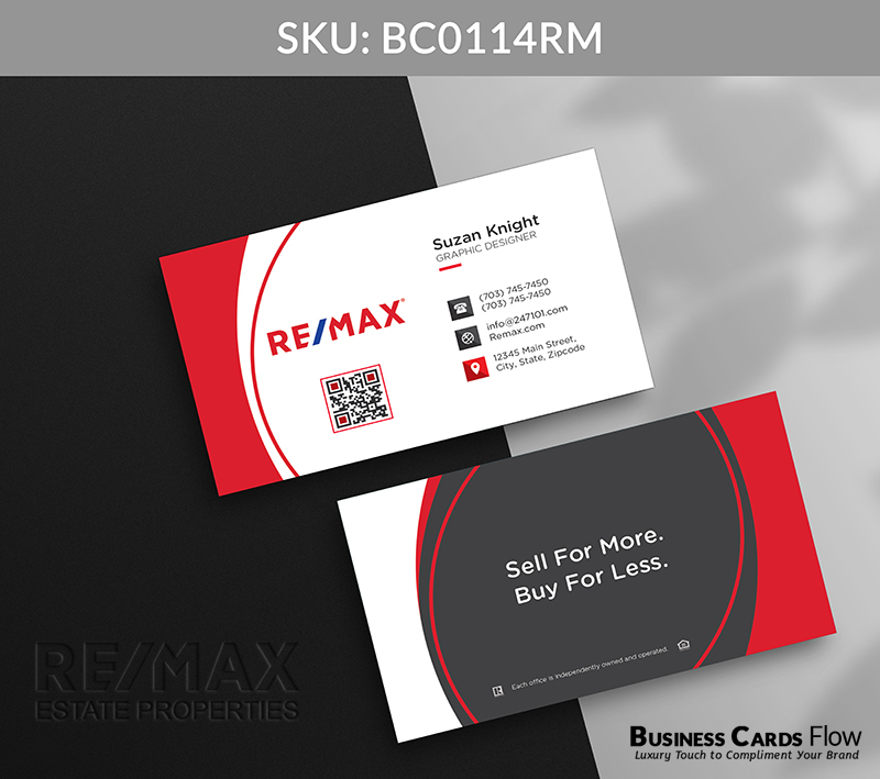 Share this design during high-end listing appointments to convey balance, style, and integrity. The impactful black-and-white contrast draws clients in, while REMAX’s red, blue, and gray accents reinforce the trusted brand they recognize. Whether face-to-face or left behind, this card leaves a lasting impression of expertise and intentional branding.
