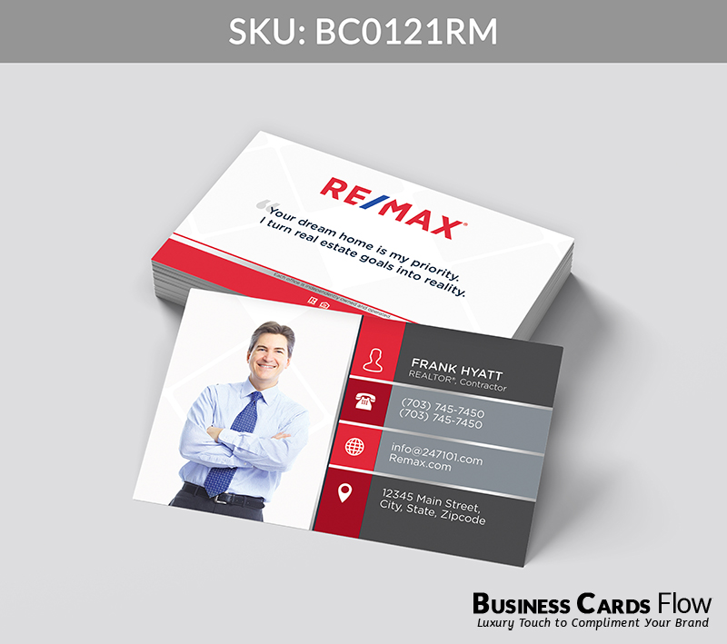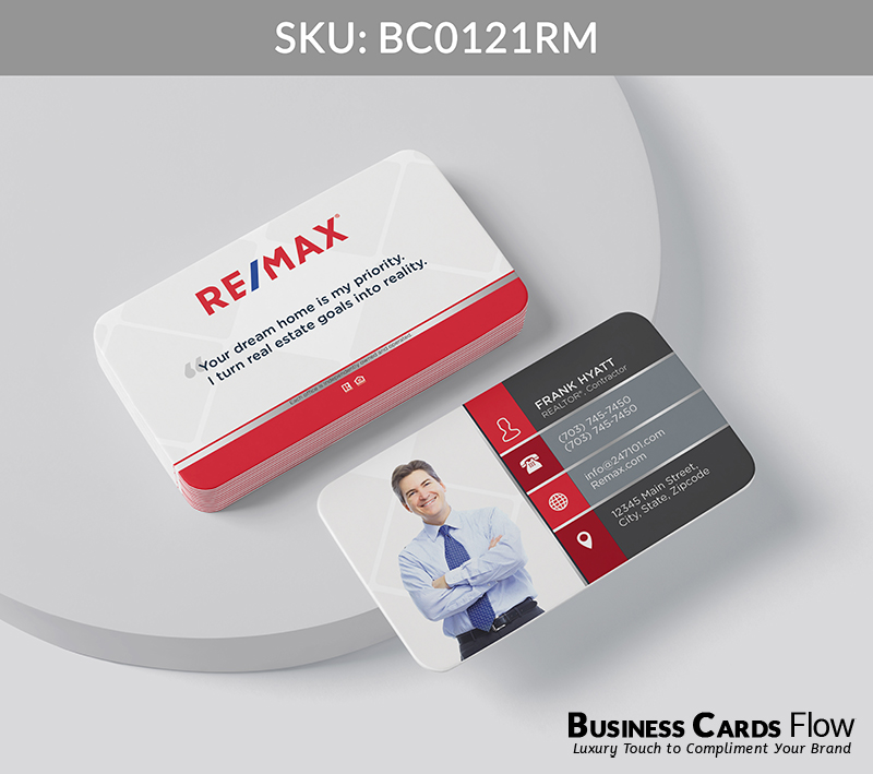 - Metallic Foil Accents: Add premium red, blue, or silver foil to key elements like your name or the REMAX logo for a striking, tactile finish that reflects confidence and sophistication.