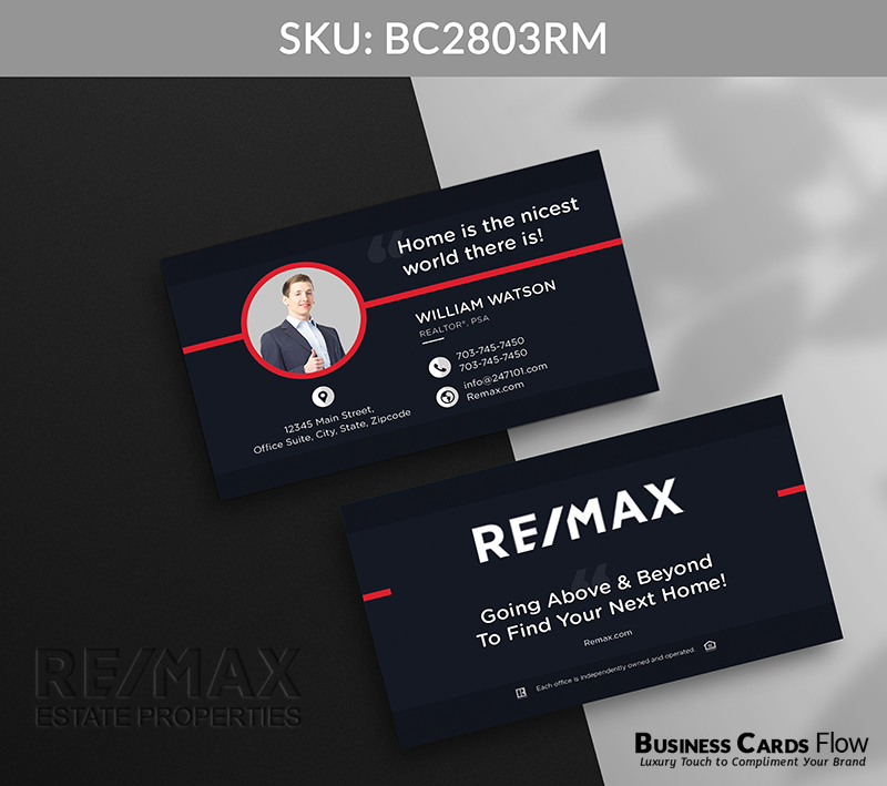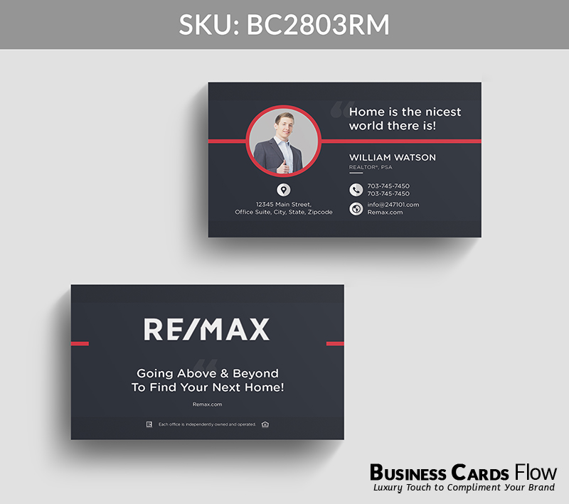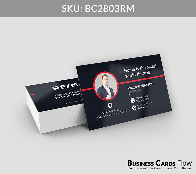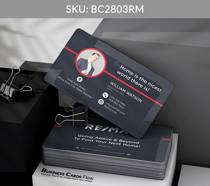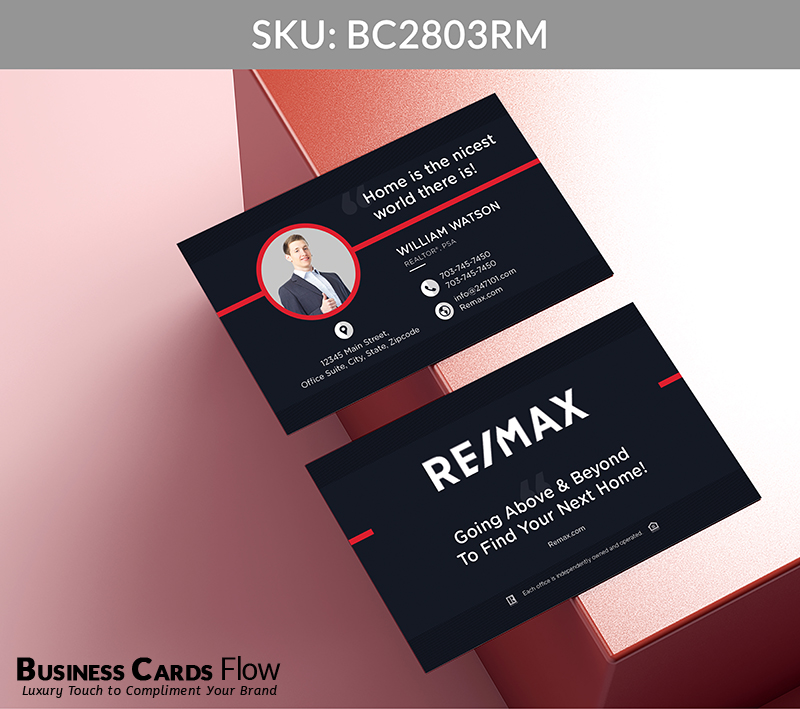 - REMAX-Color Foil Accents: Highlight your name or mission statement with foil in red, blue, or silver — a bold expression of your alignment with REMAX prestige.