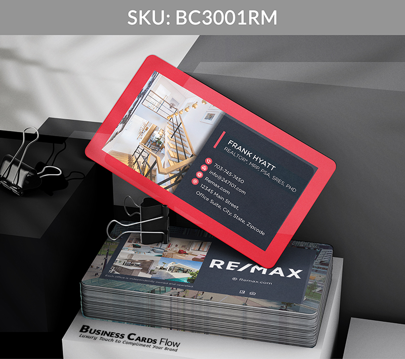 - Custom Foil Lettering: Elevate your name or tagline with foil in REMAX red, blue, or silver — a confident nod to brand alignment and personal excellence.