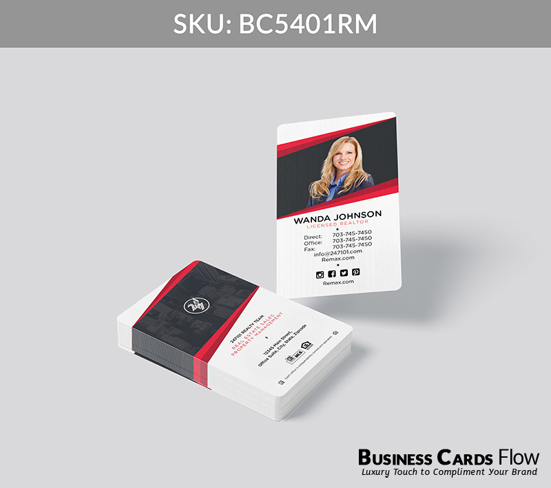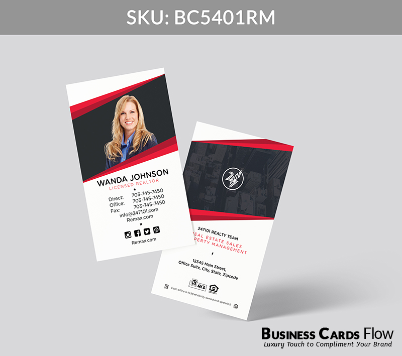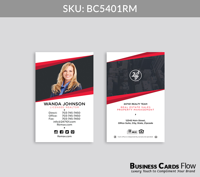 - Subtle accents in red, blue, and gray visually align your card with REMAX’s elite brand identity, creating immediate familiarity and credibility.