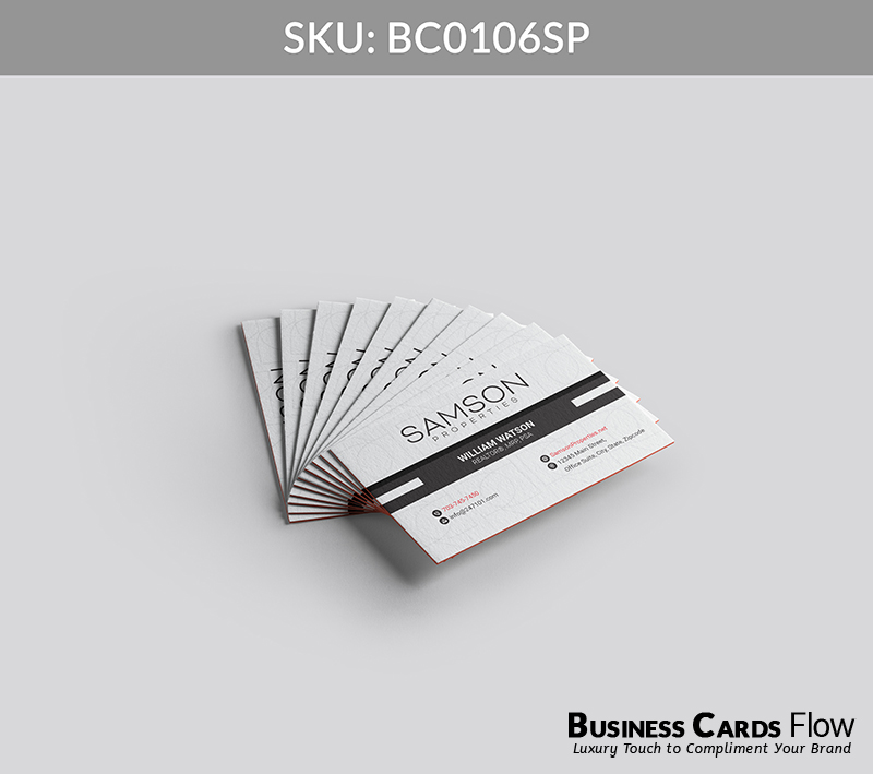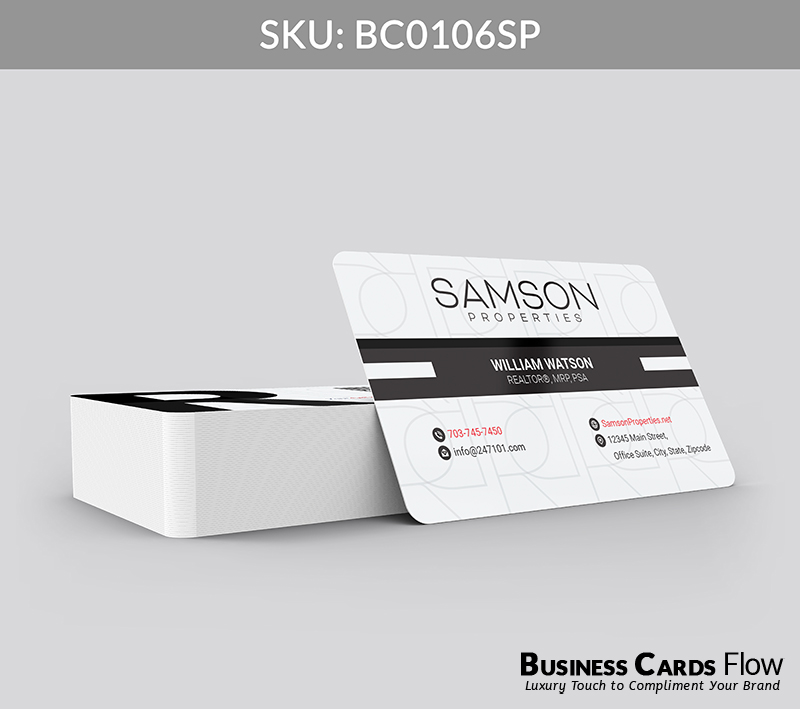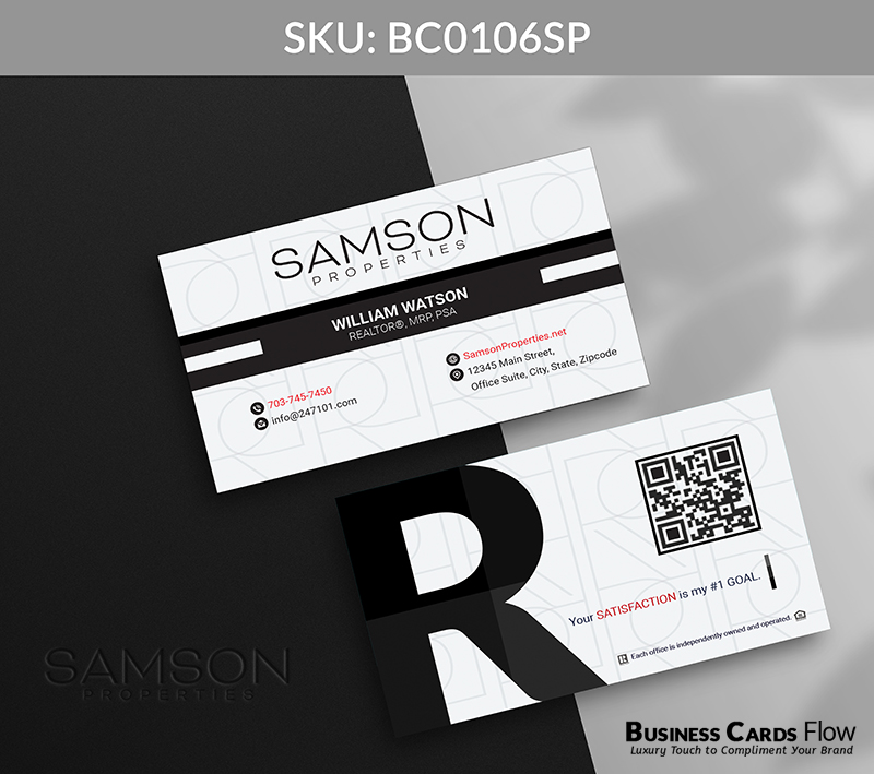 - The white and black palette aligns seamlessly with Samson Properties’ brand identity, ensuring every card reflects consistency, prestige, and visual impact.