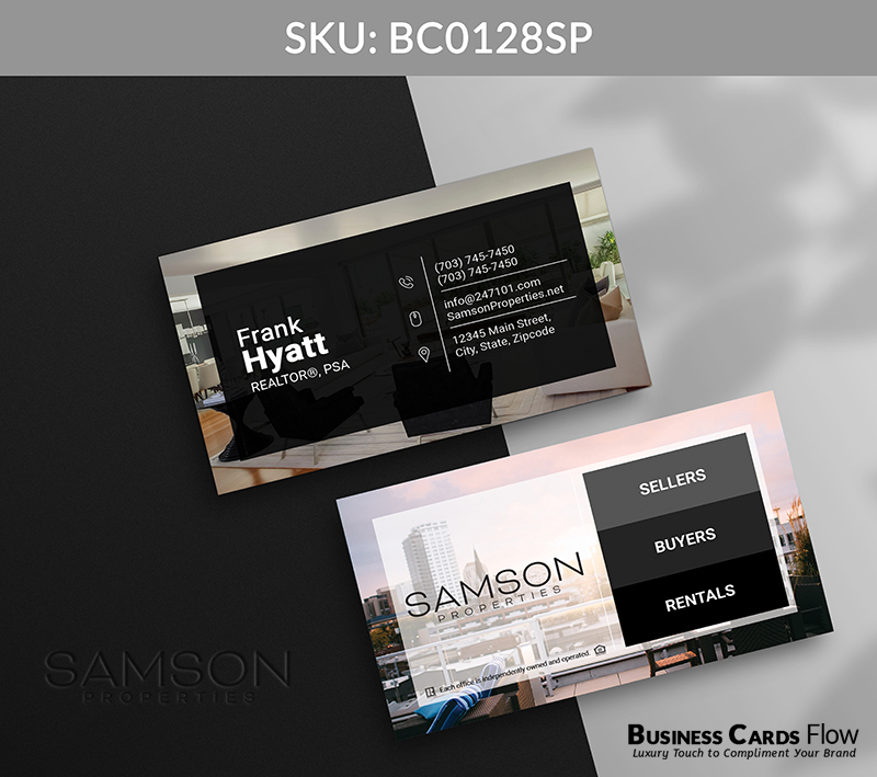 Designed to elevate your presence from first impression to final handshake, these striking cards blend visual charm with professional precision. The interplay of modern color and strategic layout supports the elevated, trust-driven image expected of Samson Properties agents — while your personal quote deepens emotional resonance and client connection.