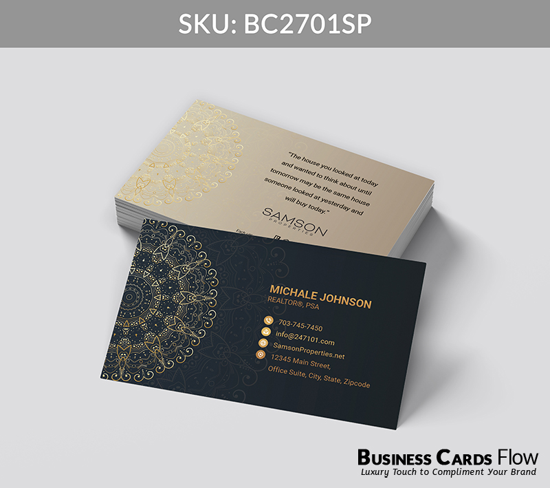 This striking card is crafted for Samson Properties agents who understand that luxury lives in the details. With its intricate design and purposeful color inversion, it elevates every introduction and reinforces the sophistication of your black-and-white brand identity.