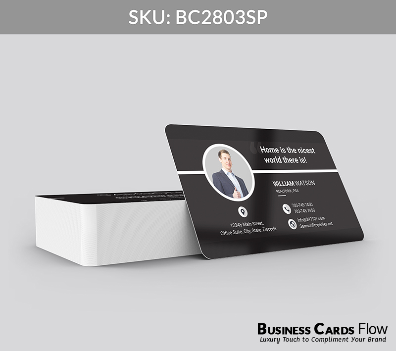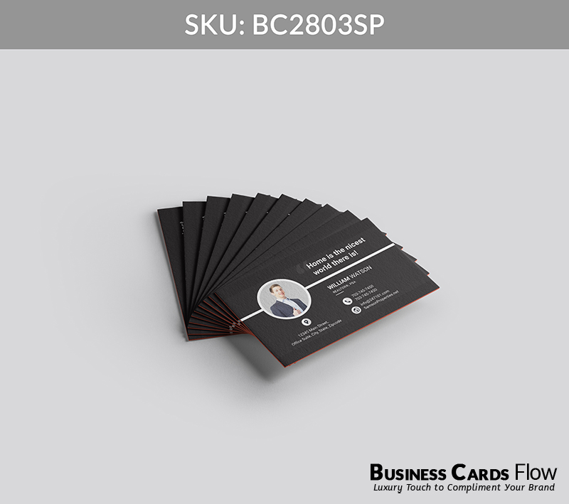 This elegant business card design features a profile photo prominently on the left side of the front, ensuring instant recognition. The back of the card provides space for a personalized slogan or mission statement, offering a powerful branding opportunity.