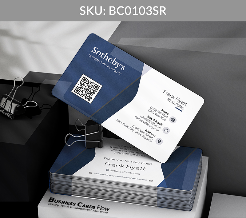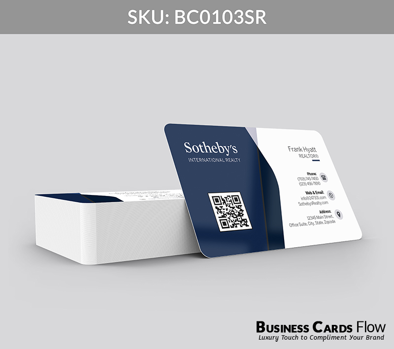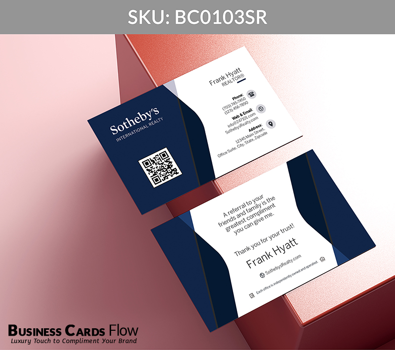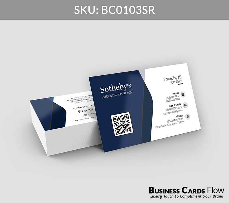 - Metallic Foil QR Code: Elevate function with style—choose a foil treatment in Sotheby’s Blue for a QR code that catches the eye and commands attention.