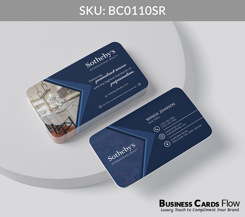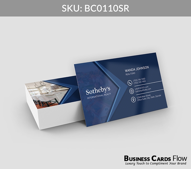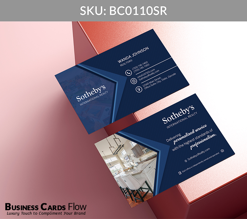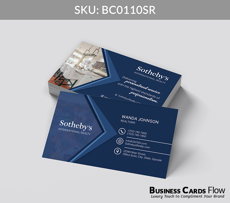 - Metallic Foil Accents: Add sophisticated foil highlights in complementary blue tones to subtly mirror Sotheby’s brand colors and enhance your card’s visual prestige.