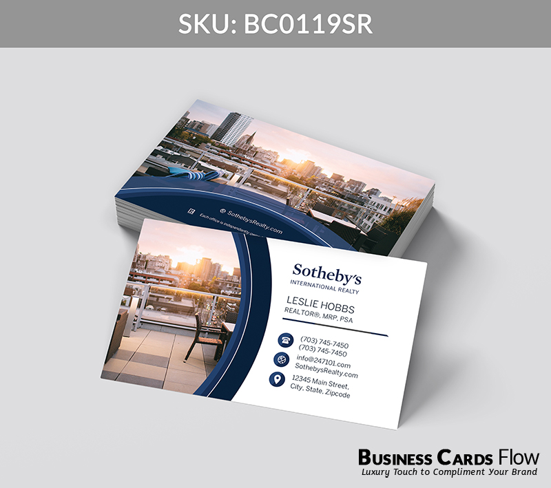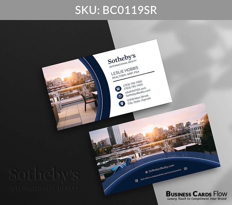 - Blue or Silver Foil Detailing: Elevate your name or logo with foil accents that reflect the Sotheby’s Blue — catching light and attention with grace and prestige.