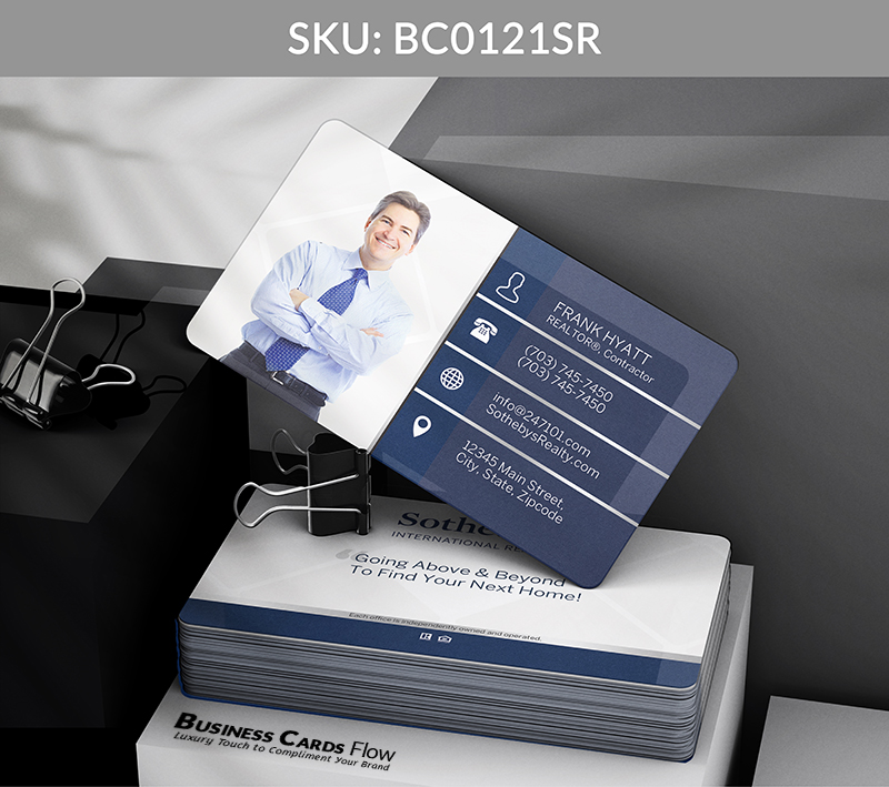 Not at all — when thoughtfully integrated, your photo strengthens client connection while maintaining the brand’s elevated, polished feel. The clean design and use of Sotheby’s Blue, Dark Blue, and White ensure your card feels both personal and impeccably professional. It’s a modern approach to building immediate trust while honoring the sophistication of your brokerage.