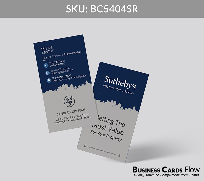 A: Definitely. This design was built to honor the Sotheby’s International Realty identity while allowing space for your unique voice through personalized slogans and tasteful enhancements. With brand-consistent colors and premium finishes, your card becomes both a signature and a statement.