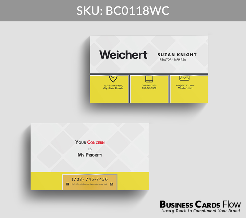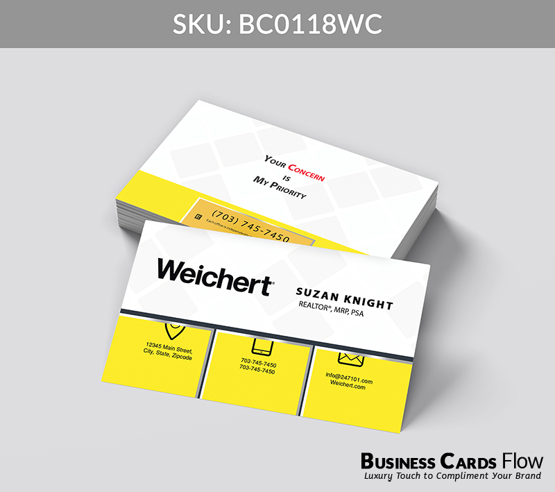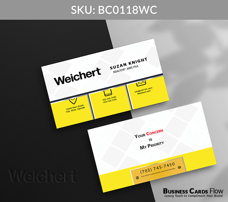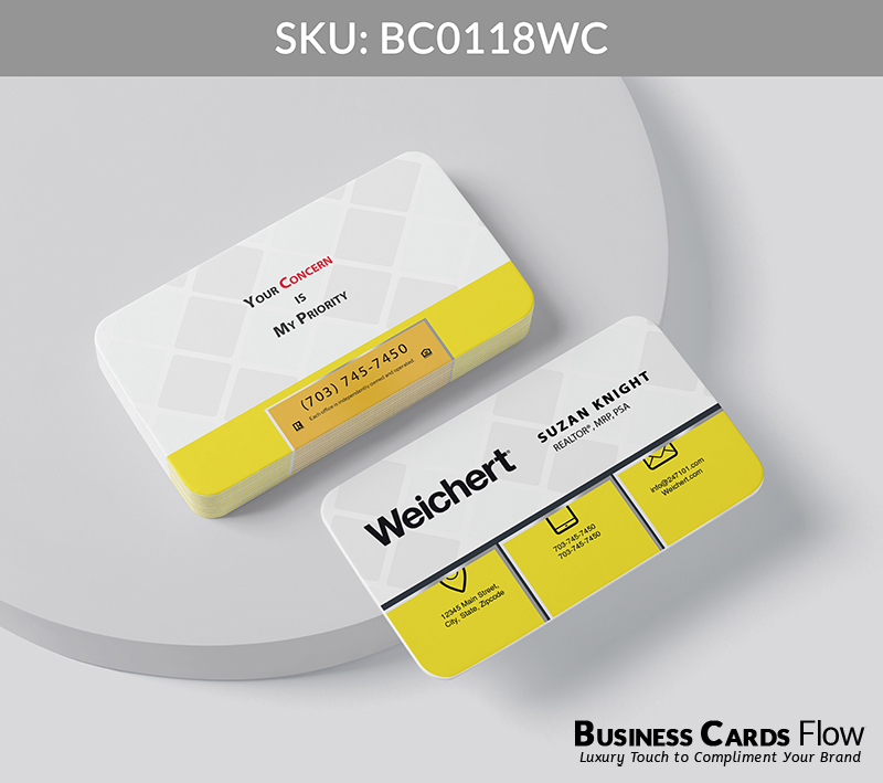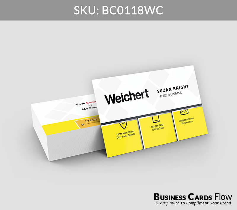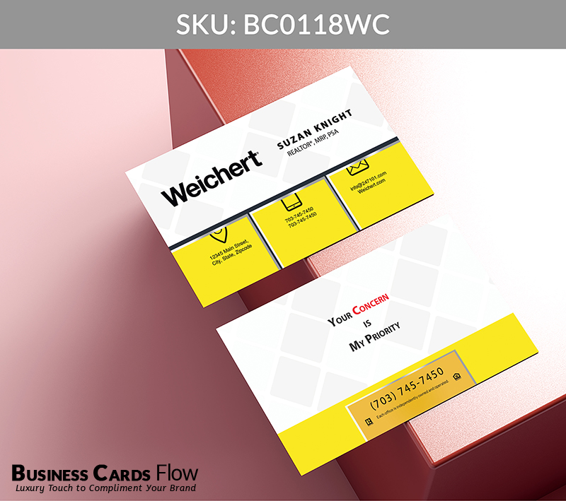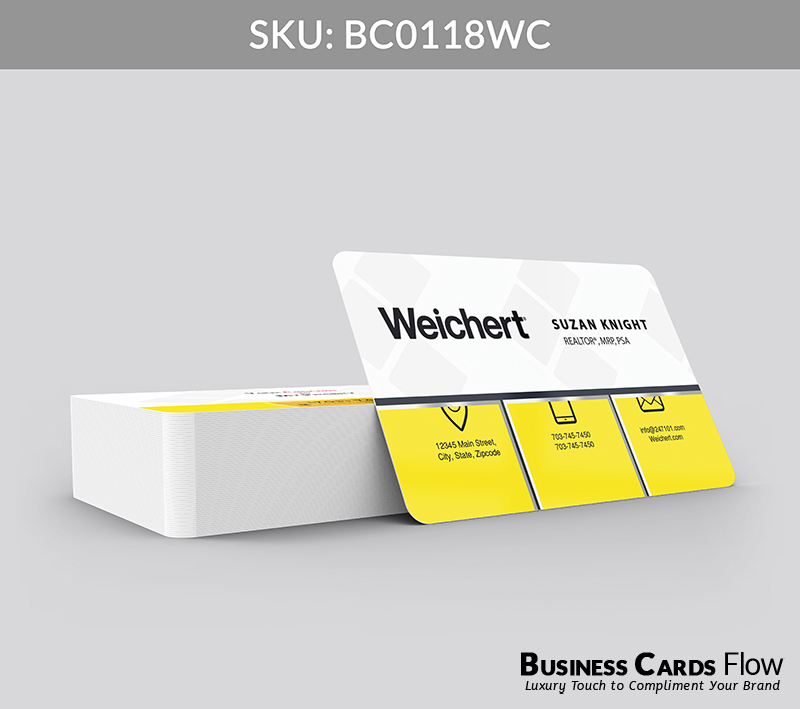 - Yellow Foil Name Highlighting: Subtle but stunning, this detail adds a pop of Weichert Yellow to your name, reinforcing both personal impact and brand identity.